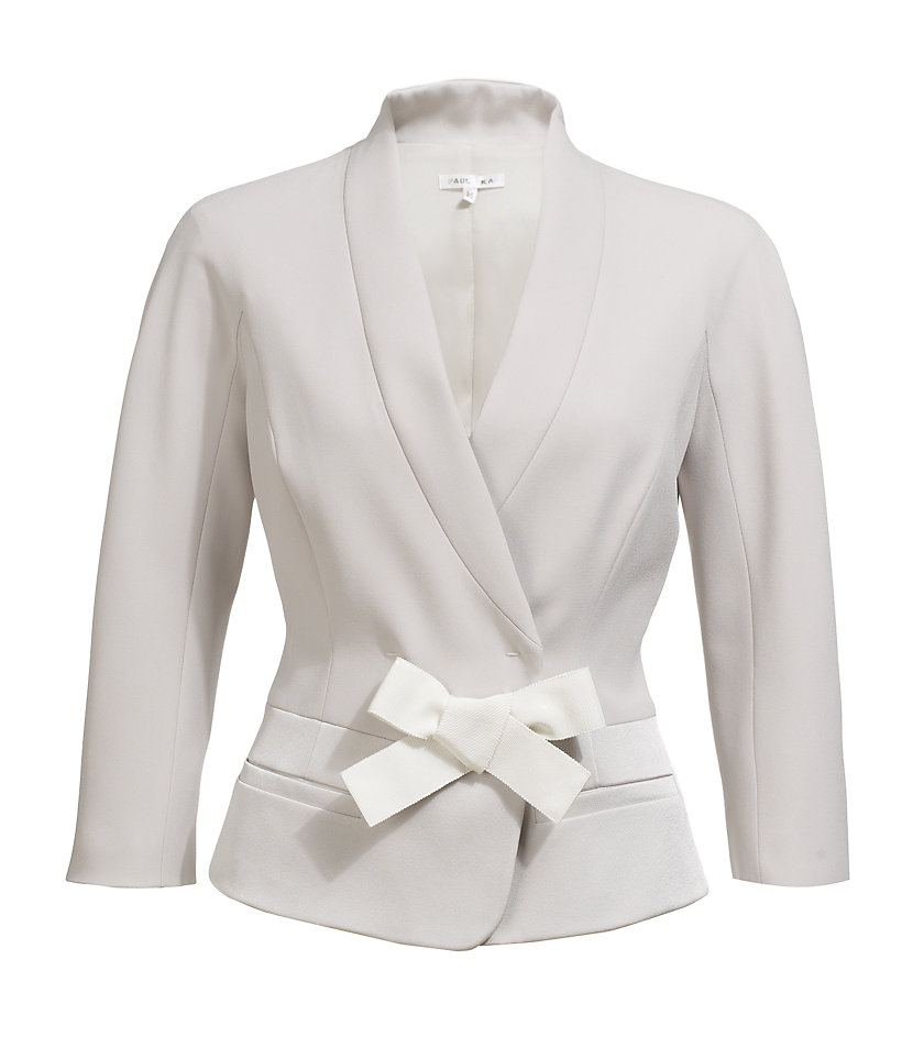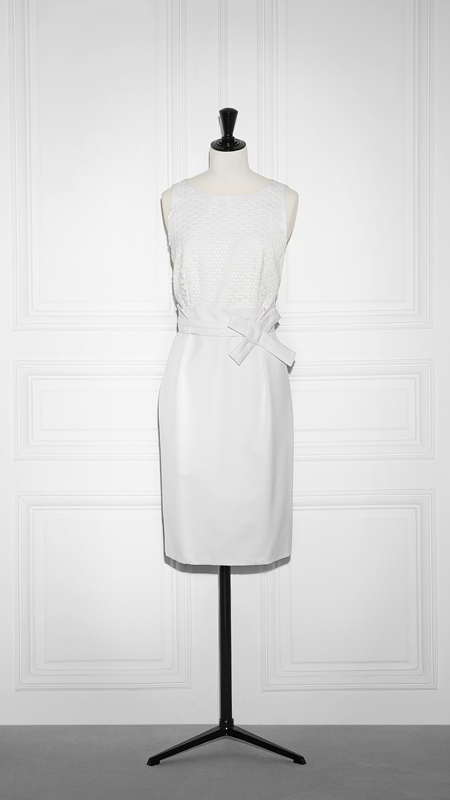 She was elegant with a white dress. Her dress is probably by Paule Ka.