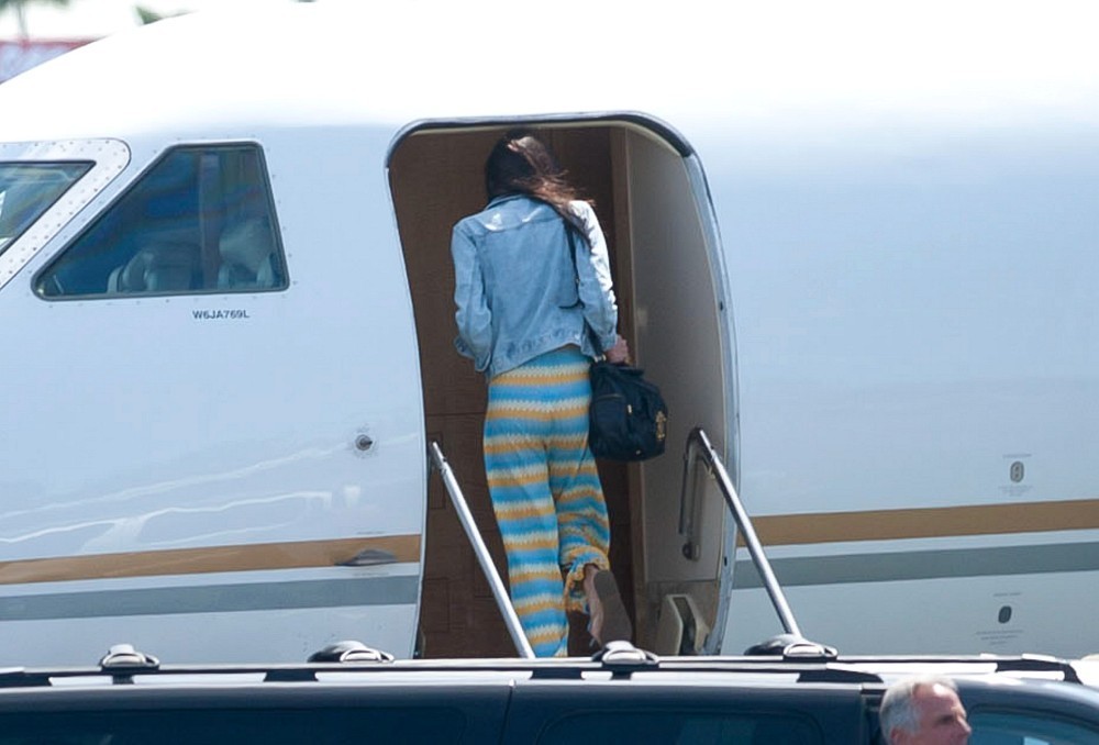 Amal alamuddin and George Clooney were seen boarding a private jet at Van Nuys airport in California.