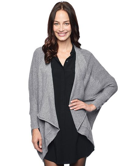 a grey waterfall cardigan with matching top