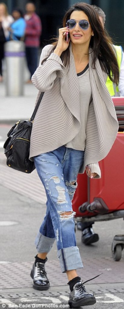 For the travel, she opted for a casual-chic look with