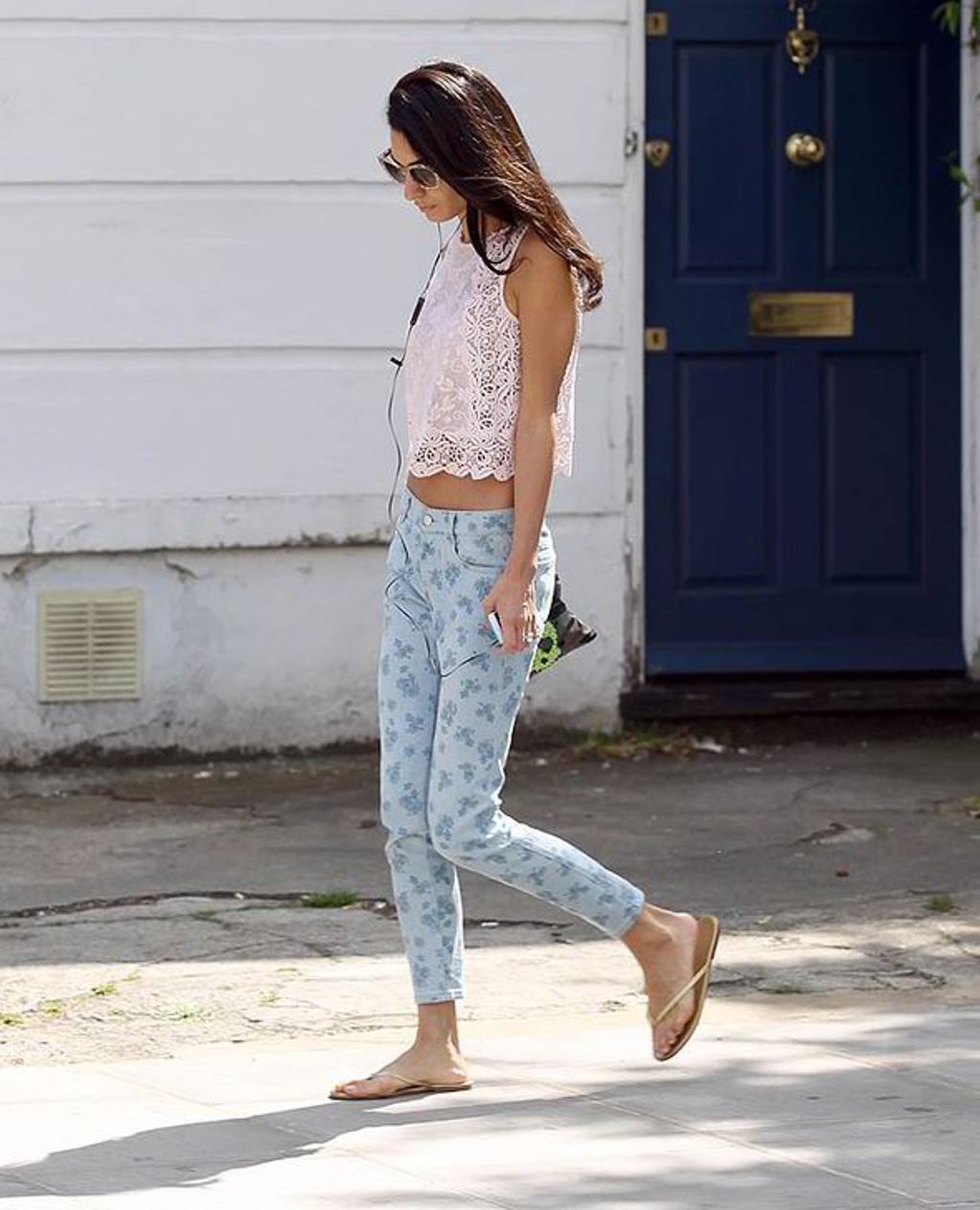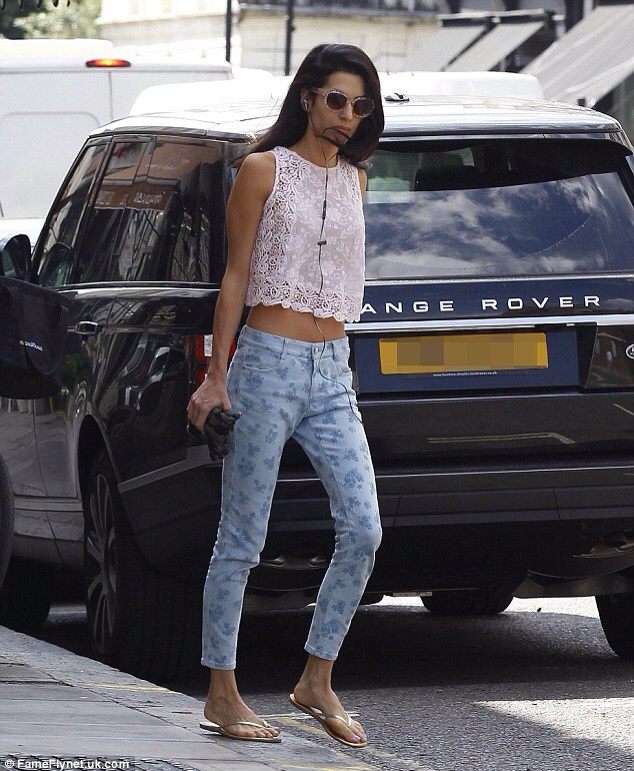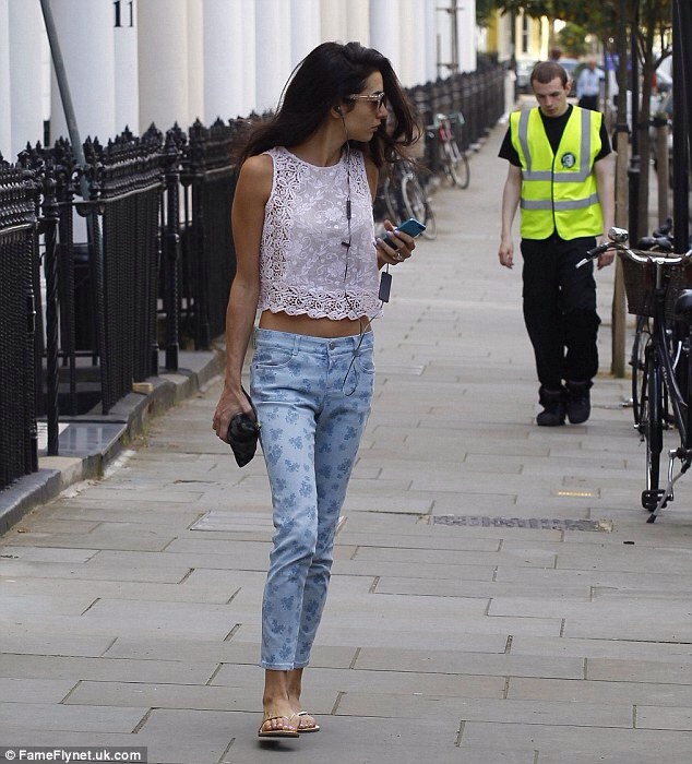 The human rights lawyer was seen showing off her toned tum in a lacy light pink crop top while out and about in London.