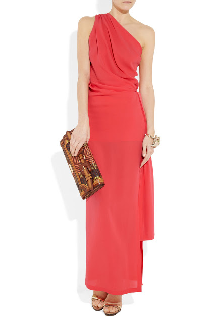 She looked beautiful with an one shoulder maxi coral dress. Sadly, I don’t have an ID, but I could buy my replica on Asos and on sale 🙂