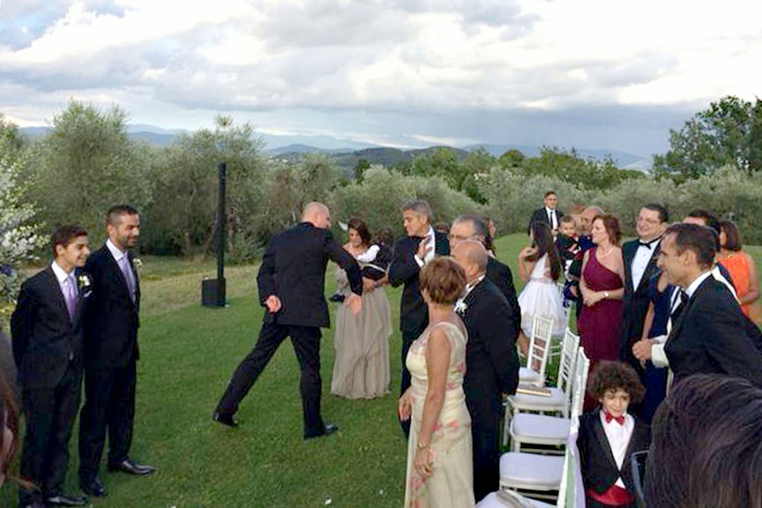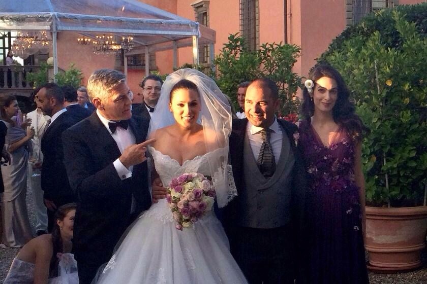 George Clooney joined fiancée Amal Alamuddin as she officiated her cousin’s wedding in Florence over the weekend.