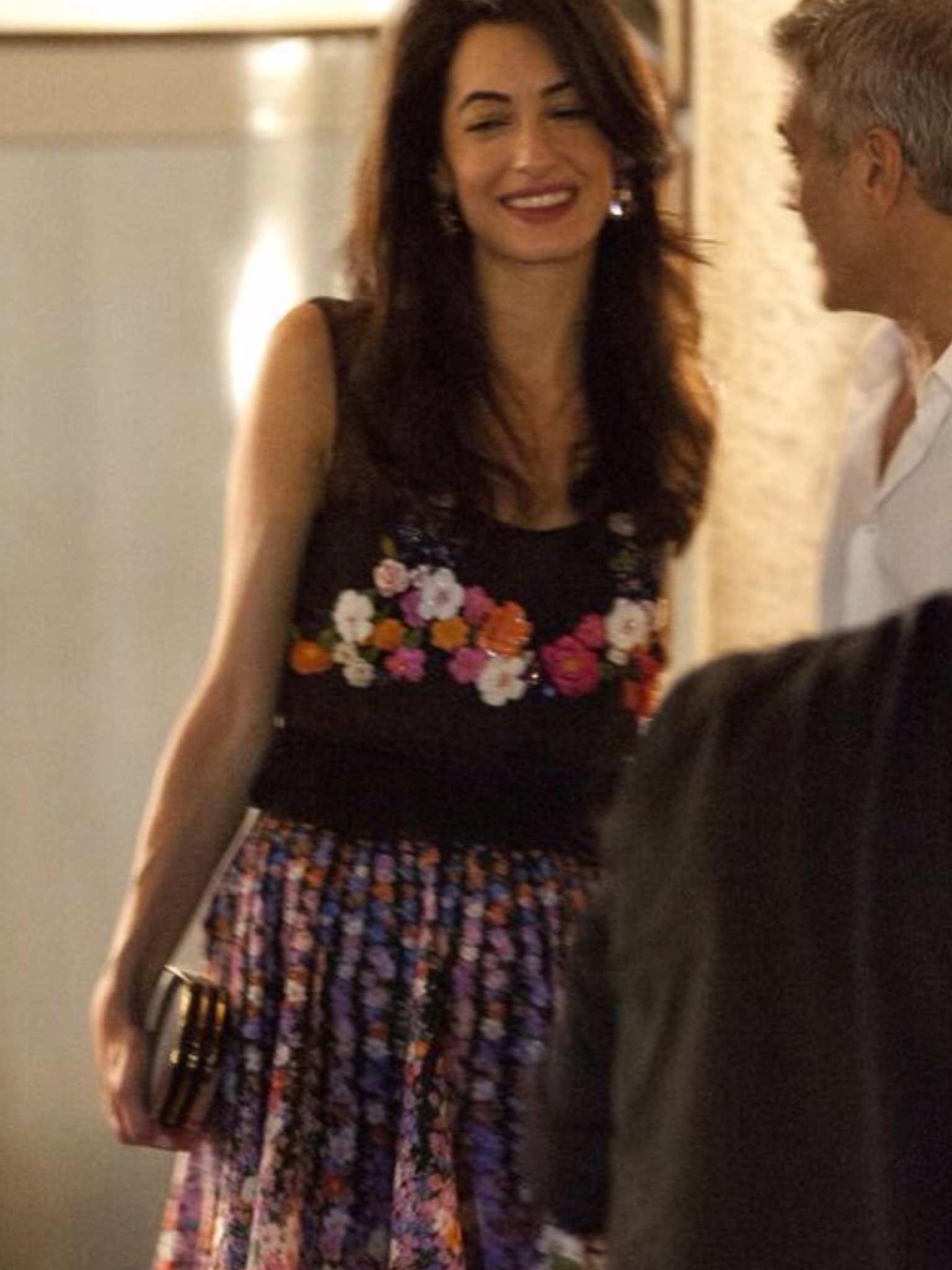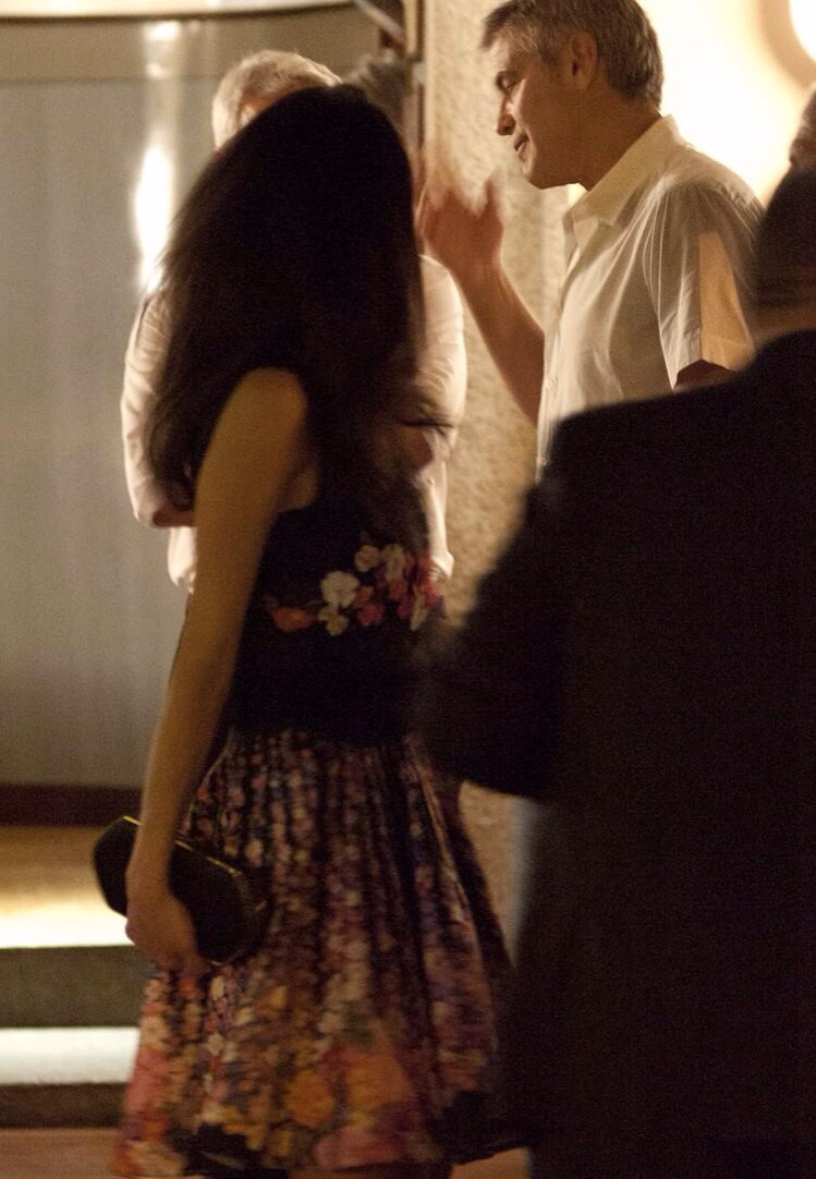 Amal Alamuddin wore a beautiful floral suit by Alberta Ferretti.