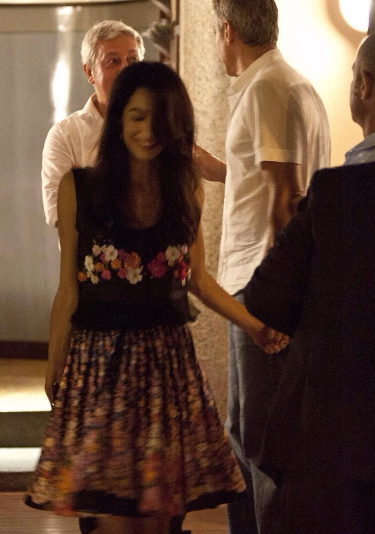 The 53-year-old actor and his love made sure to exchange departing goodbyes and handshakes with acquaintances as they left Harry’s Bar after enjoying a romantic dinner together at the restaurant overlooking Lake Como.