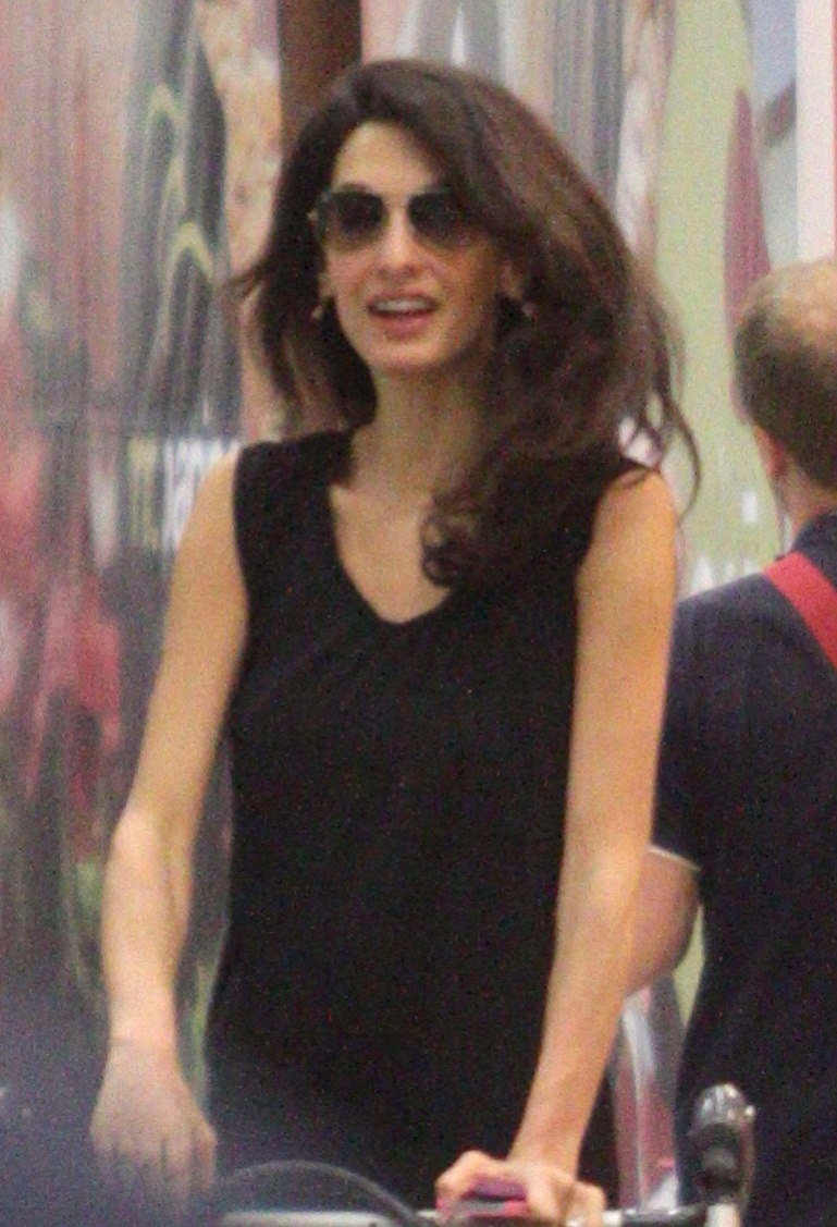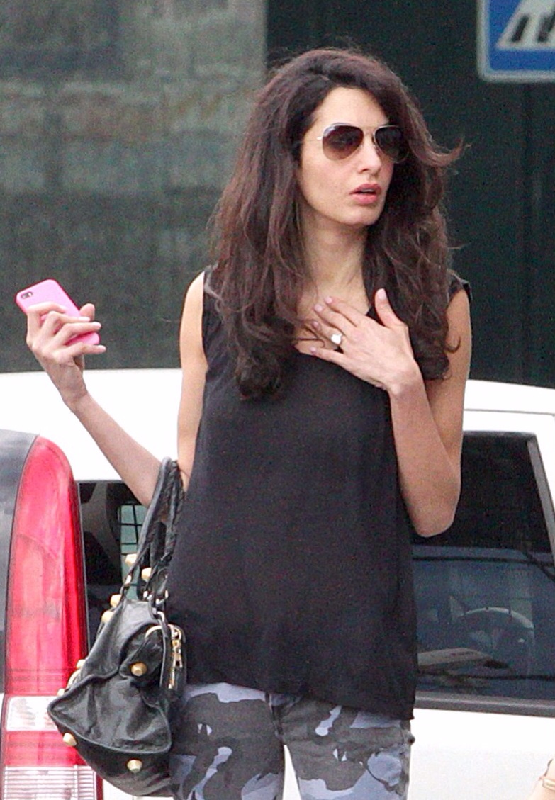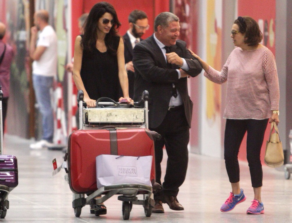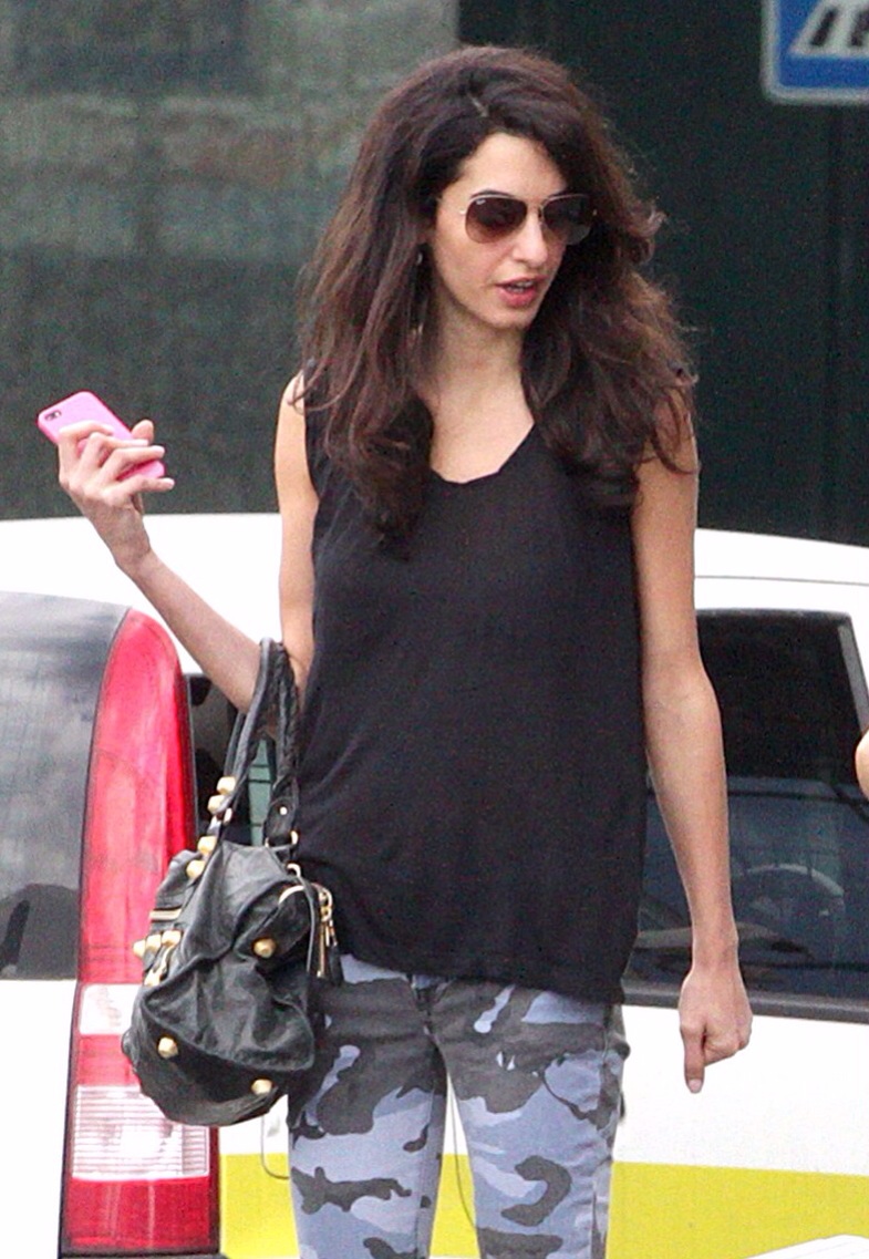 Amal Alamuddin dons a chic pair of camouflage pants while arriving at the airport on Friday (August 1) in Milan, Italy.