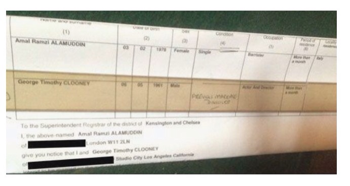 “I Amal Ramzi Alamuddin of London, give you notice that I and George Timothy Clooney of Studio City, Los Angeles California…” the notice begins. After this point, you aren’t able to read the rest of the statement.
