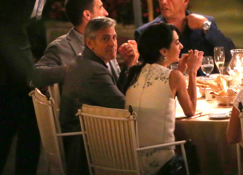 George Clooney and Amal Alamuddin were spotted enjoying a very romantic dinner at Lake Como with friends recently, and the two couldn’t help but show off their admiration for one another. In a series of photographs, the twosome were seen being very affectionate with one another, from holding each other to sharing food to even stealing a smooch over the dinner table. So cute!