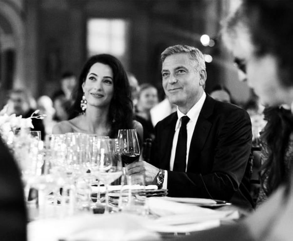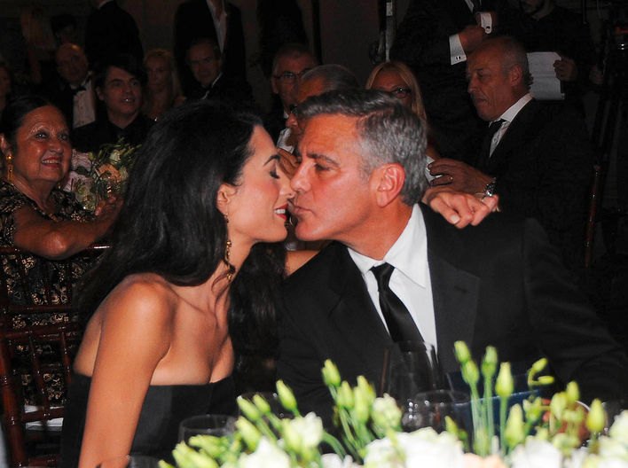 “I met my lovely bride-to-be here in Italy, whom I will be marrying, in a couple of weeks, in Venice, of all places,” and “Amal, I love you to death and I cannot wait to become your husband,” he told the crowd. 🙂