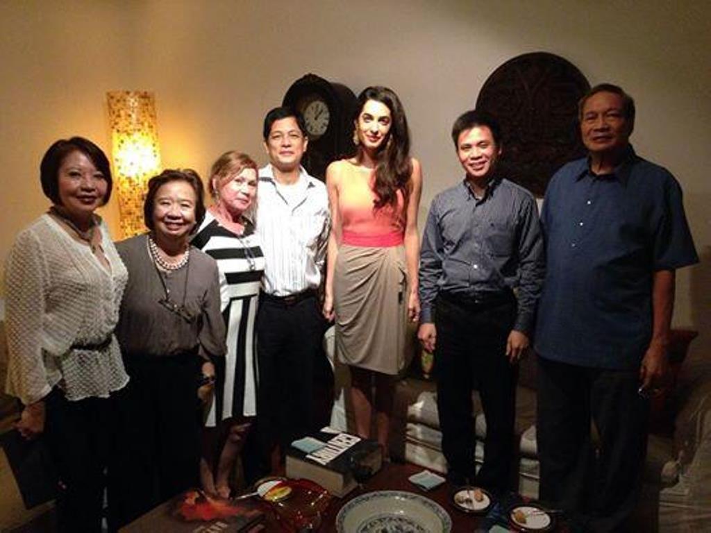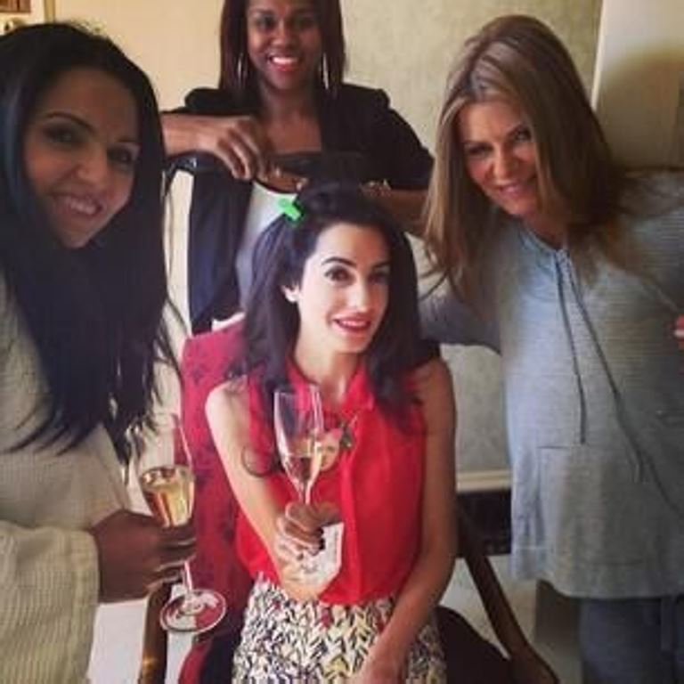 Yes that is Matt Damon’s wife in the first pic and the other woman is Grant Heslov’s wife. Grant is George Clooney’s business partner and he produced Monuments Men with George. This pic was taken as the ladies were getting ready for the film’s private showing at The White House last February. And yes, I love seeing Amal wears outfits more than just once in public,