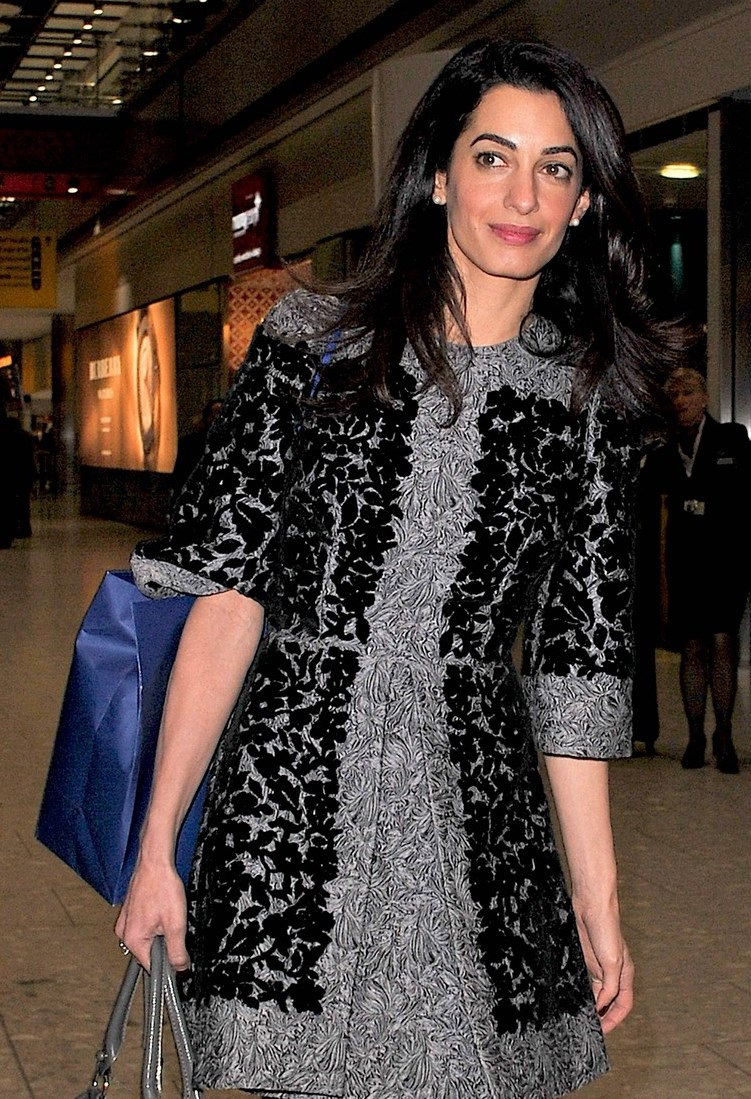 A beautiful outfit in grey and black. I know Amal is highly educated. Great!