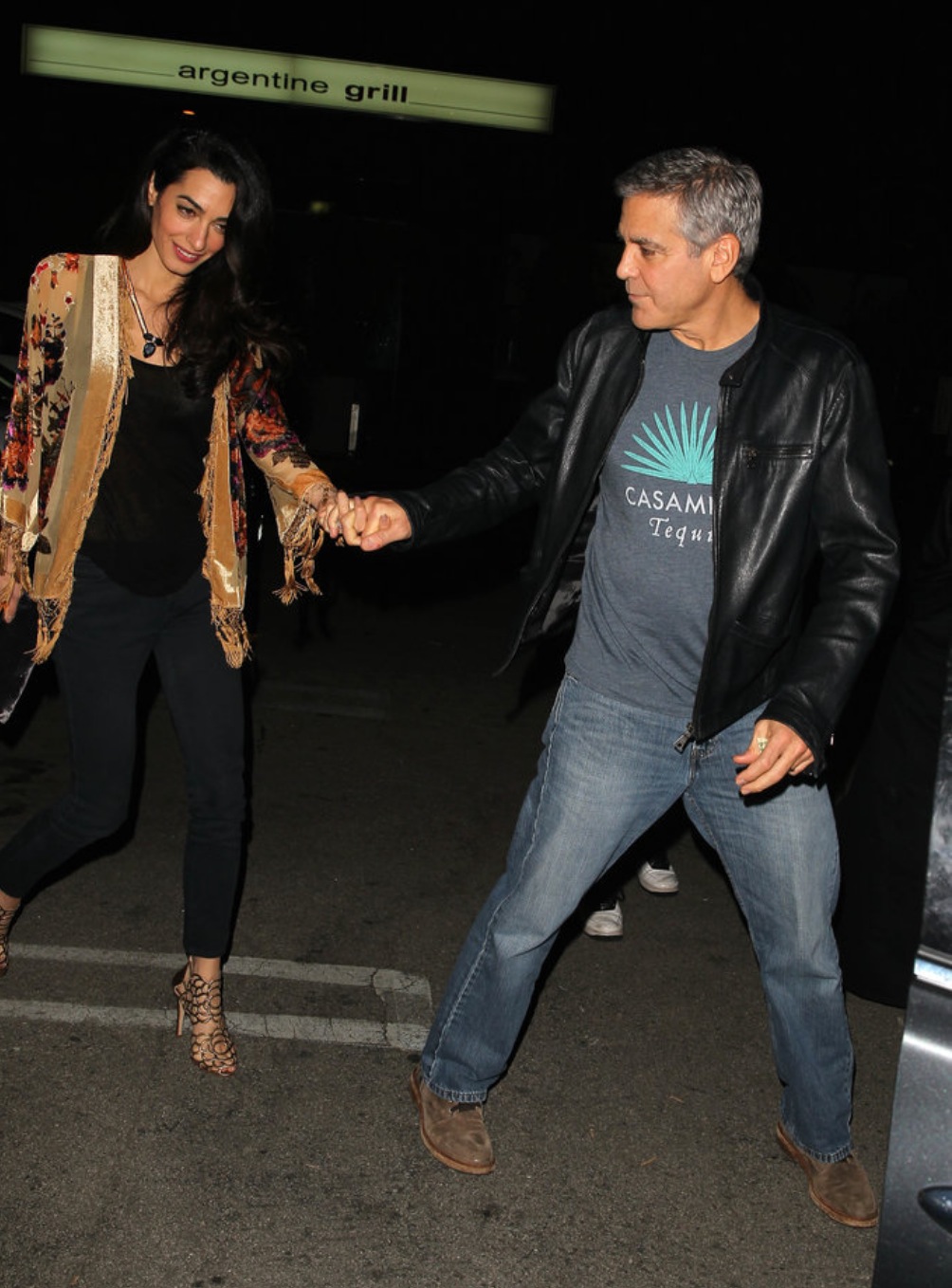 Captivating Amal as usual. George, not so much. Dish that T Shirt and use proper venues to advertise your Tiquila brand. This is getting old. As for Amal’s Kimono, it is a dated piece, the velvet and all, a choice for an older lady going to the opera when nothing fits her anymore…It belongs in Mom Baria’s closet and not Amal’s.