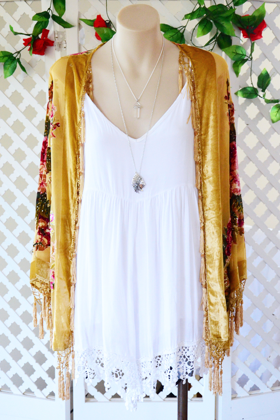 Love…. love that velvet floral kimono by Shantique Designs… Very Malibu California casual chic.