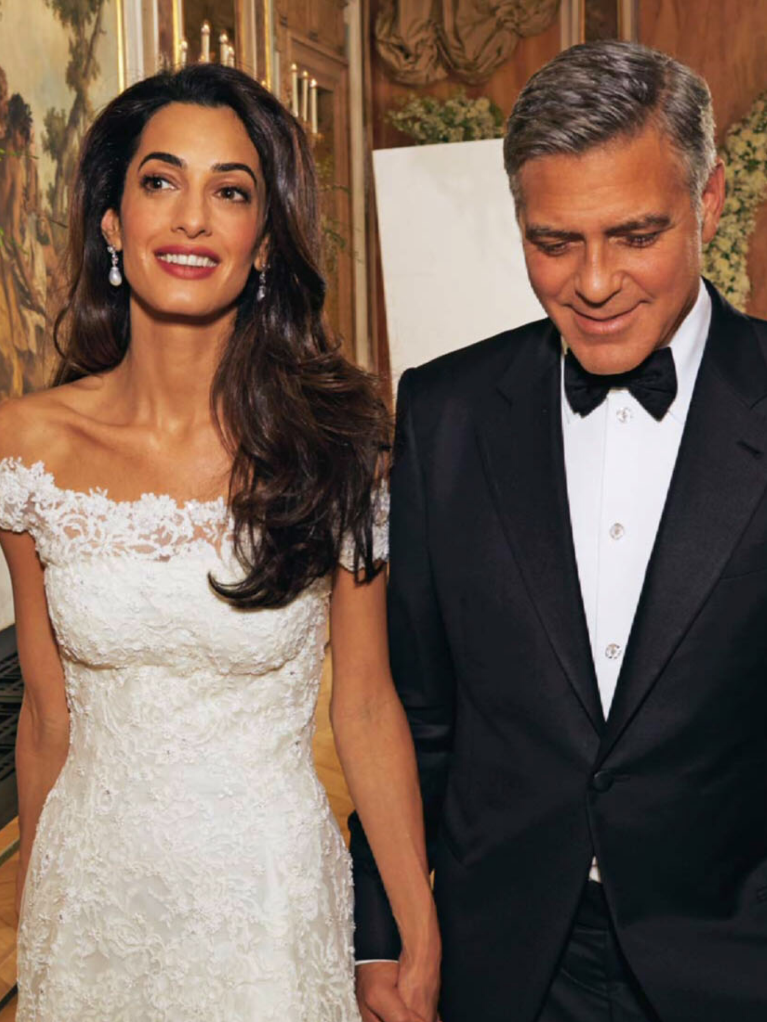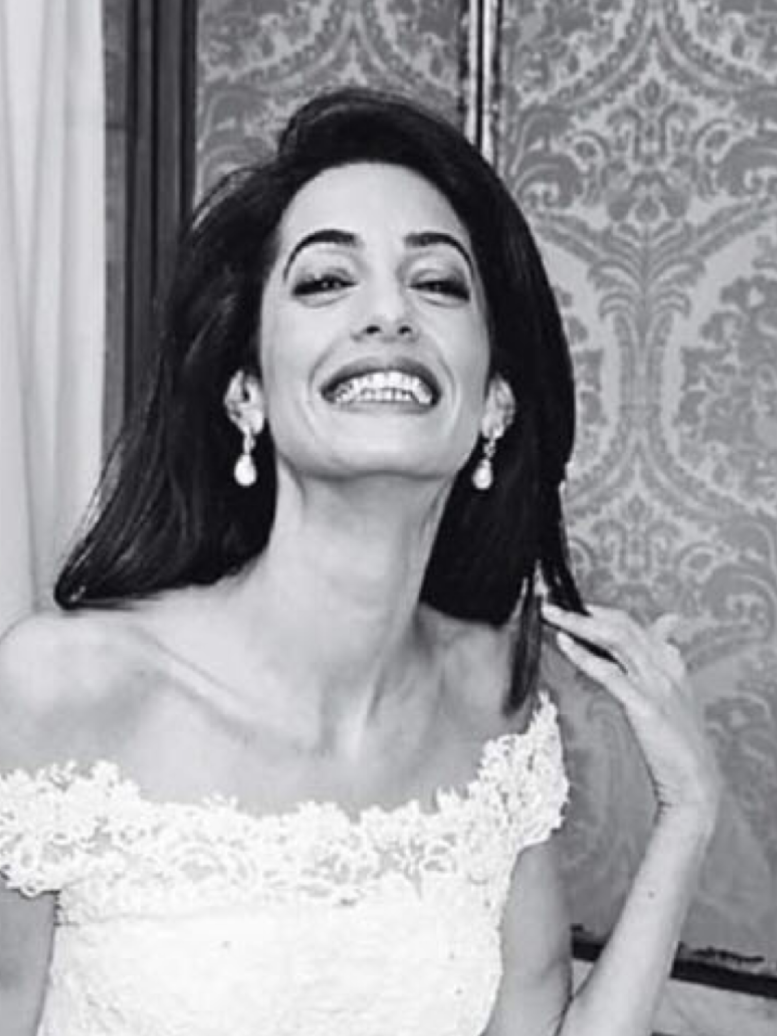 Amal Clooney wore natural Bahraini pearl (with square cut diamonds) earrings by Chatila. It was a present from her parents.