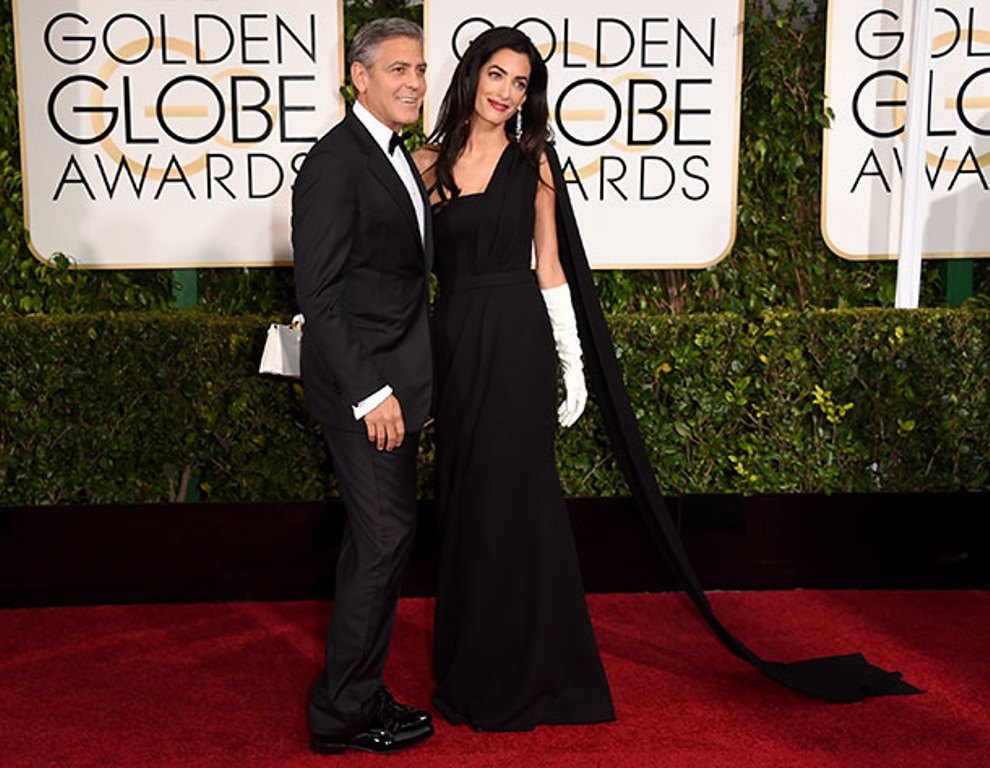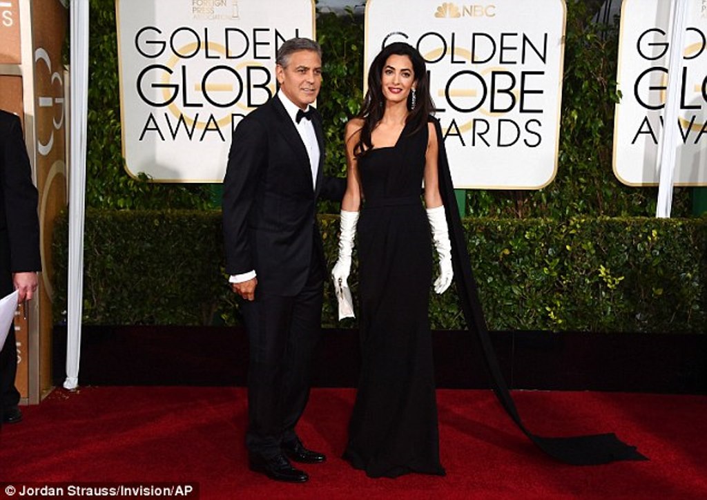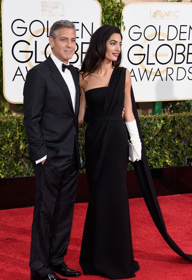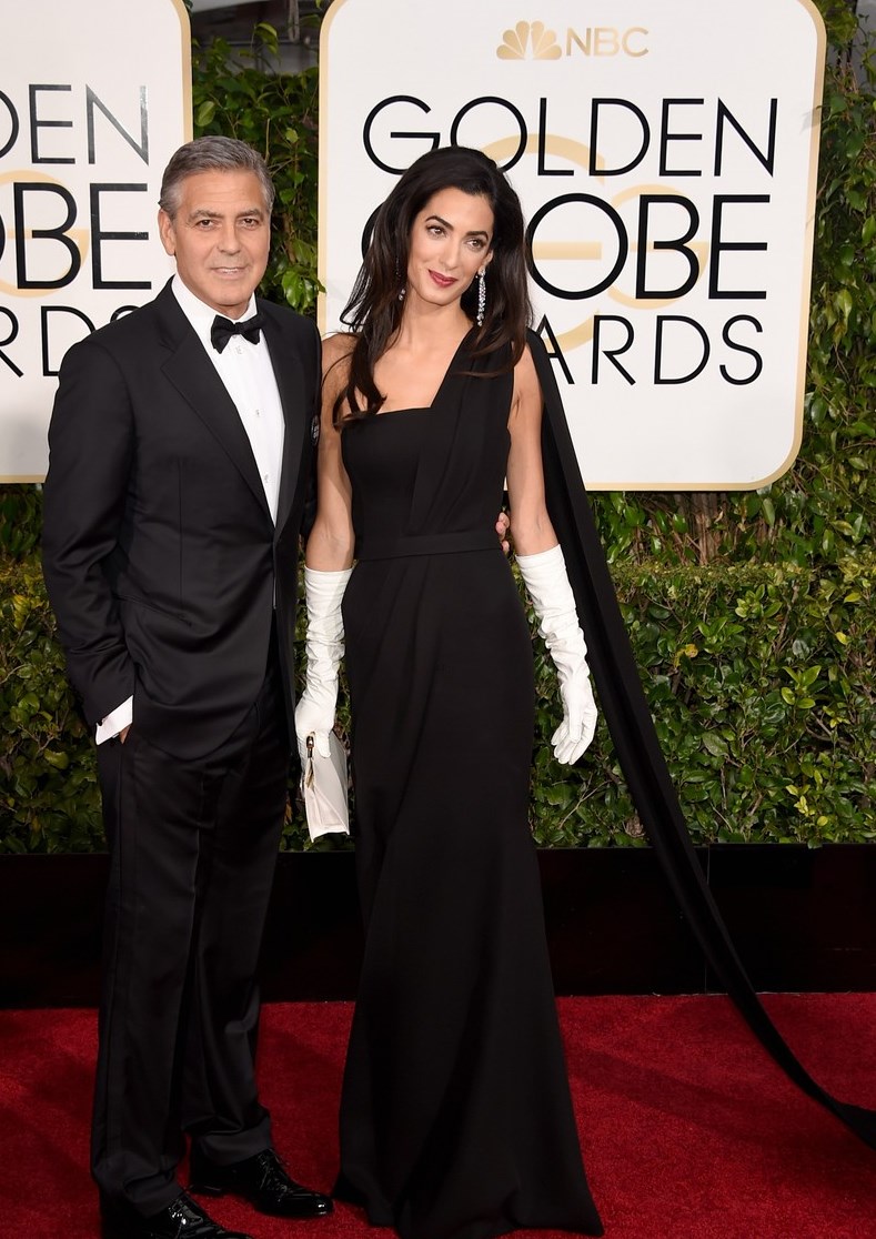 Amal is stunningly beautiful. She stands out regardless of what she wears. That said, last night’s ensemble was nothing short of Booorrrrring !!! I was expecting so much more. No show stopper here. She tried for regal and failed. That dress did nothing for her. It simply did not translate well on camera. Those gloves would of worked much better in either black or rich pink and they should of been tight fitting. The purse looked like it came from the dollar store as did the earrings. Knowing it was raining, she should of worn her hair up or back. She looked really uncomfortable and out of her comfort zone. In spite of all that she was the most beautiful women at the Globes (along with Amy Adams & Jennifer Lopez).