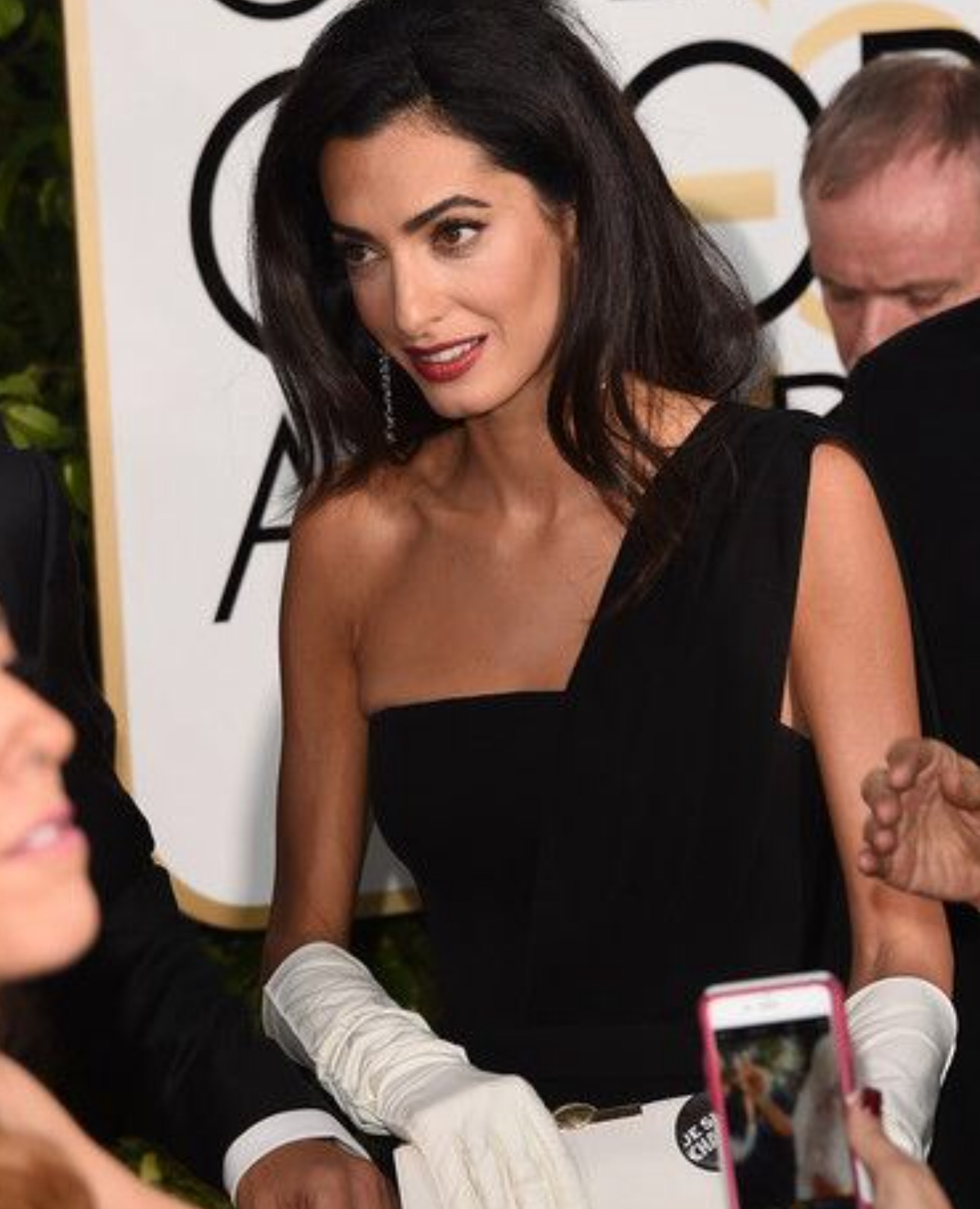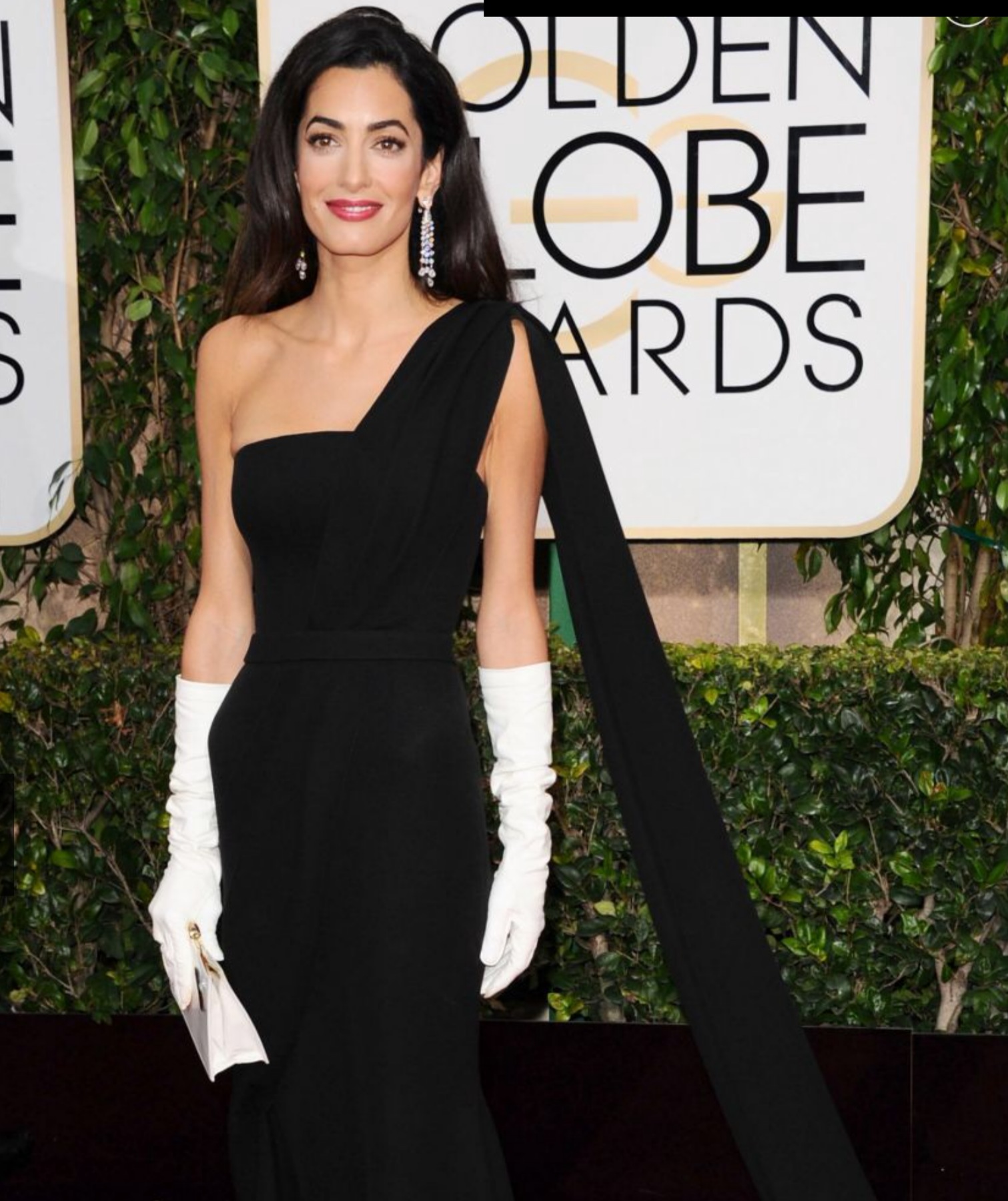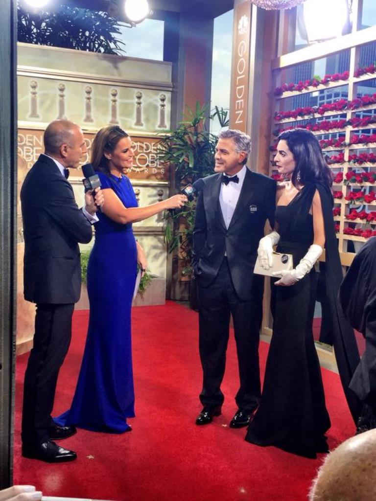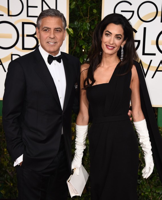 Amal is stunningly beautiful. She stands out regardless of what she wears. That said, last night’s ensemble was nothing short of Booorrrrring !!! I was expecting so much more. No show stopper here. She tried for regal and failed. That dress did nothing for her. It simply did not translate well on camera. Those gloves would of worked much better in either black or rich pink and they should of been tight fitting. The purse looked like it came from the dollar store as did the earrings. Knowing it was raining, she should of worn her hair up or back. She looked really uncomfortable and out of her comfort zone. In spite of all that she was the most beautiful women at the Globes (along with Amy Adams & Jennifer Lopez).