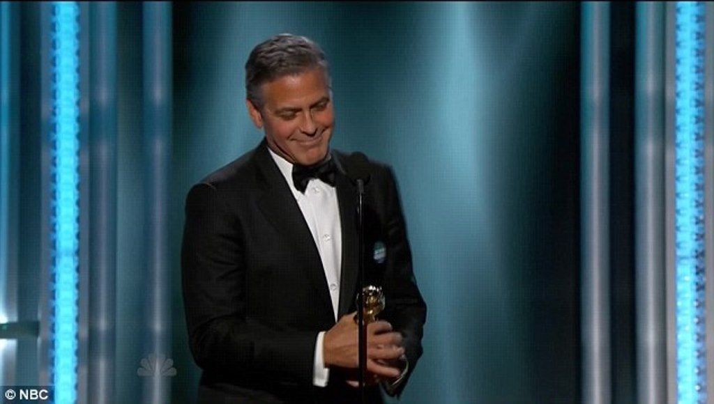 George’s speech was uneventful. The intent was there but the delivery fell short. He was all over the place and seemed awkwardly unprepared and nervous as hell. I mean this award was not a surprise so he could of prepared better. The comment he made about Amal was the same comment he made at that dinner in Venice – ‘proud to be your husband’ blah blah.