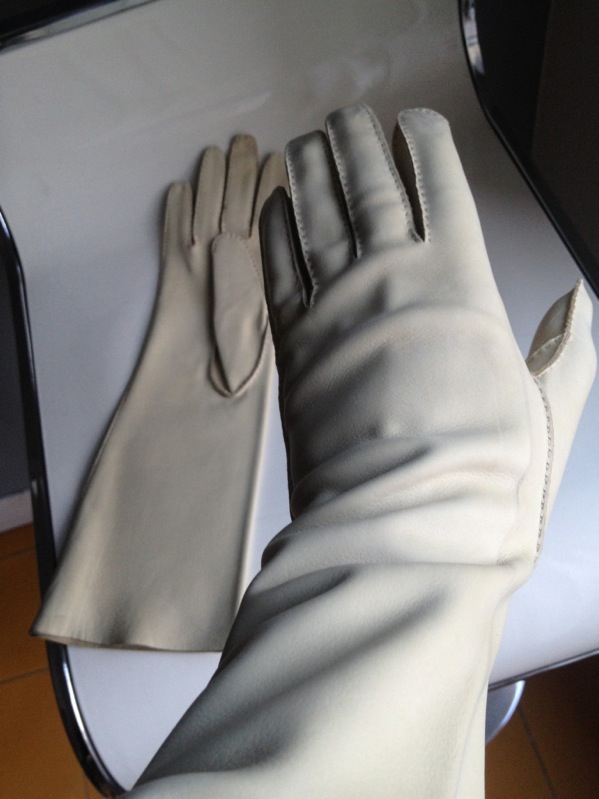 The white leather gloves by Christian Dior, I found them on Ebay
