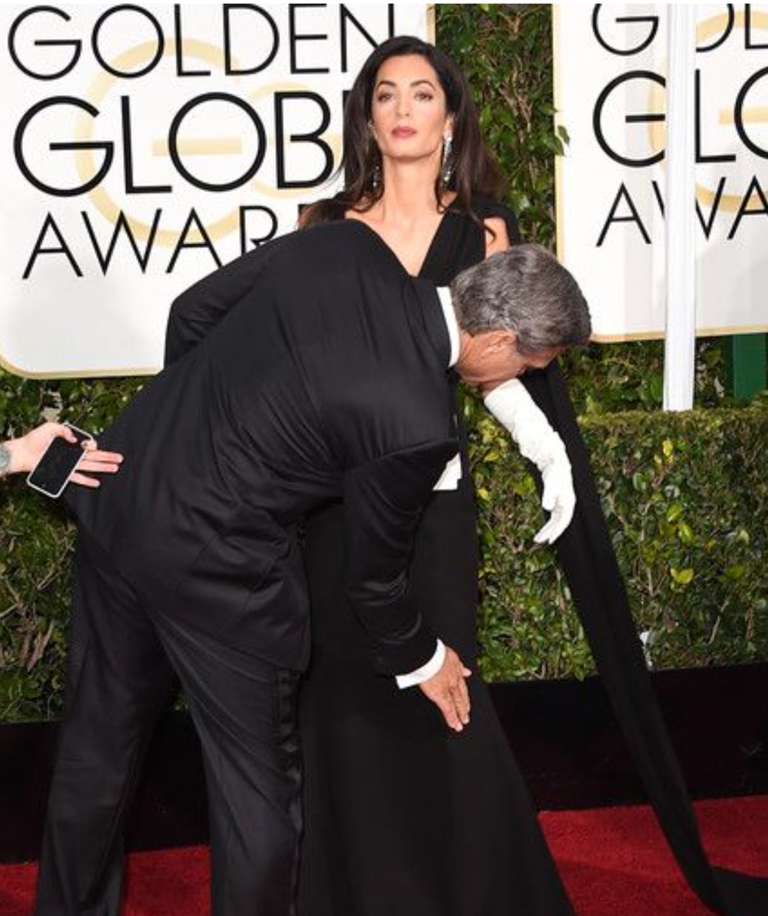 I prefer her in a black shinny gone like that one in Venice, shinny black give her a better fresh look. Although she is beautiful in this dress also. This kind of gloves for me has to be a bit large , otherwise you feel suffocated with them 🙂 I like very much George and his speech was fabulous.