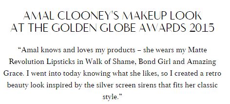 Charlotte Tilbury has prepared a special page on her website where she describes the make-up for Amal Clooney at the Golden Globes event.