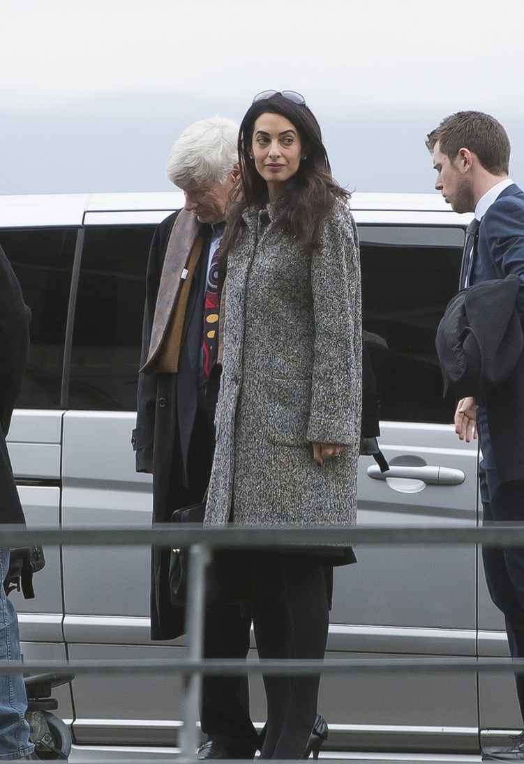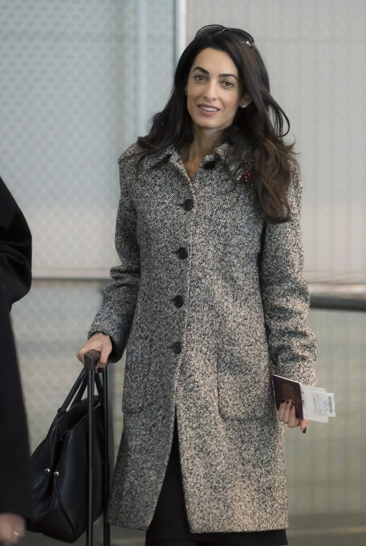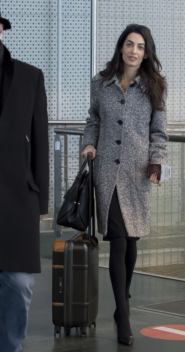 Amal Clooney bundles up as she gets ready to fly out of Euro Airport Basel-Mulhouse-Freiburg on Wednesday (January 28) in Saint-Louis, France.