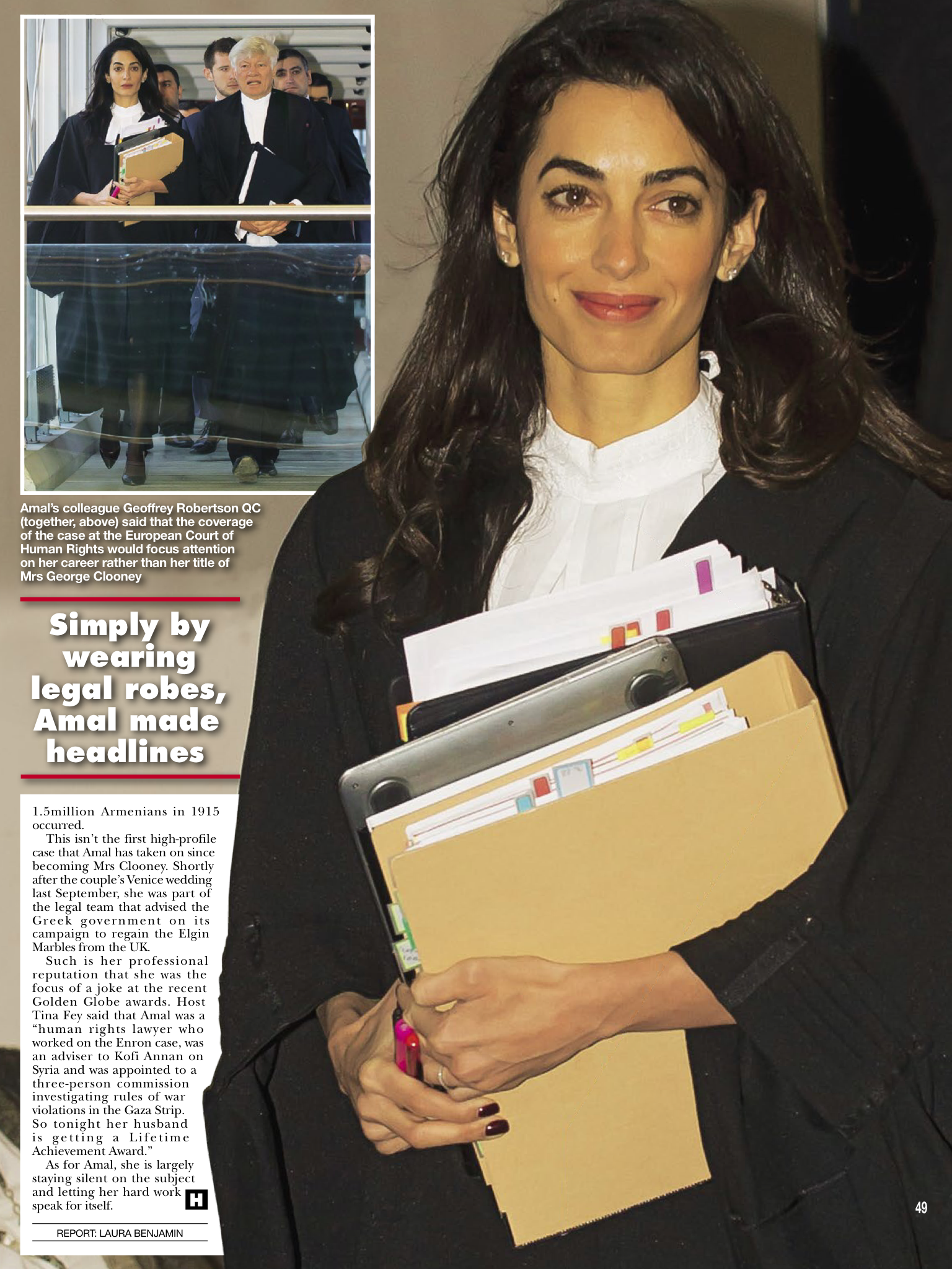Secondly, I used the term ‘ridiculous’ because Amal Clooney is a lawyer, not a movie star/singer/other type of entertainer. She made submissions that were 5 minutes in duration, preceding Mr Robertson QC’s submissions which were slightly longer, and basing her submissions on facts contained in Mr Robertson QC’s book on what he describes as the Armenian Genocide published in late 2014. Her ‘day’ in court, whereupon she read from written notes – she did not run a hearing – are then splashed all over Hello magazine.