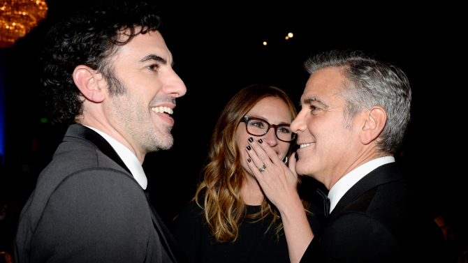 George Clooney, Sacha Baron Cohen and Julia Roberts at the BAFTA in 2013
