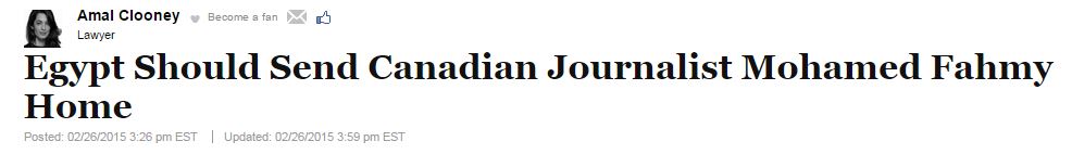 4 thoughts on “Egypt Should Send Canadian Journalist Mohamed Fahmy Home – New article by Amal Clooney
