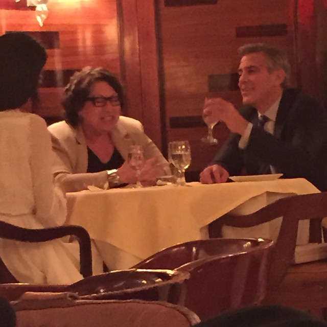 Amal and George Clooney have been spotted at the Cipriani restaurant in New York. Amal wore a high neck dress in white by Miu Miu. The other woman in these pictures is Sonia Sotomayor currently Supreme Court Justice . Amal Clooney was a student law clerk for Supreme Court Justice Sonia Sotomayor when the justice was on the U.S. Court of Appeals for the Second Circuit and Amal Clooney was a student at New York University’s law school.