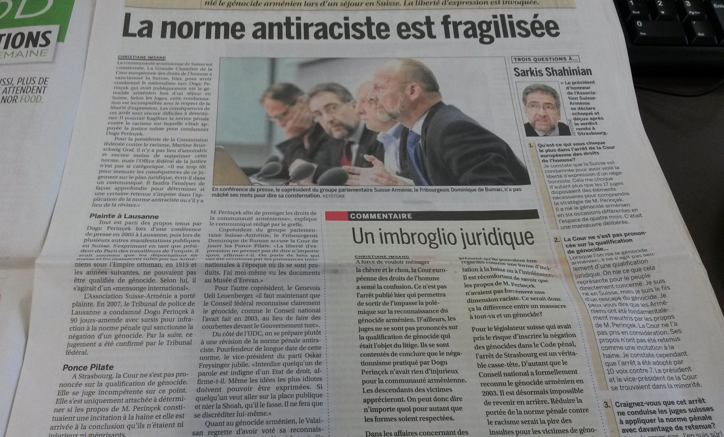 Geoffrey Robertson was present as third party for Armenia at the ECHR in Strasbourg on Thursday for the case Perinçek v Switzerland.