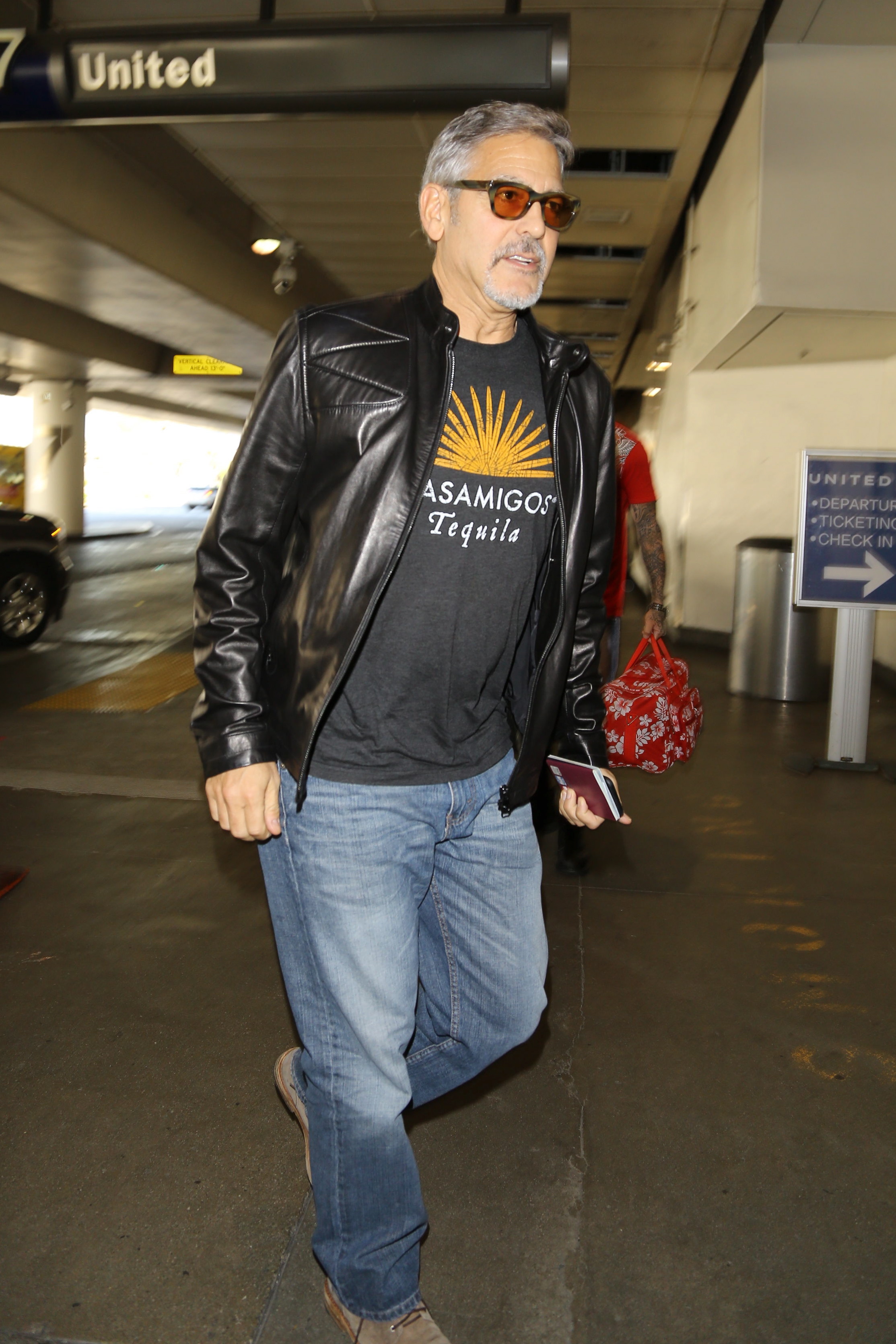 Amal and George Clooney catch a flight at LAX on November 8, 2015. They hurried to the airport.