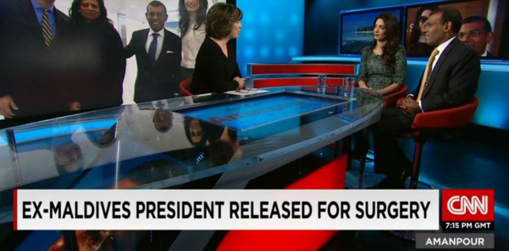 Christiane Amanpour interviewed yesterday on CNN former Maldives president Mohamed Nasheed with Amal Clooney.