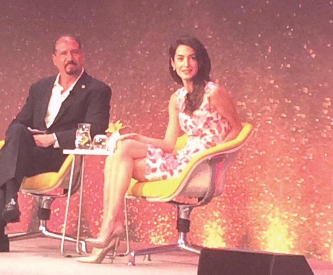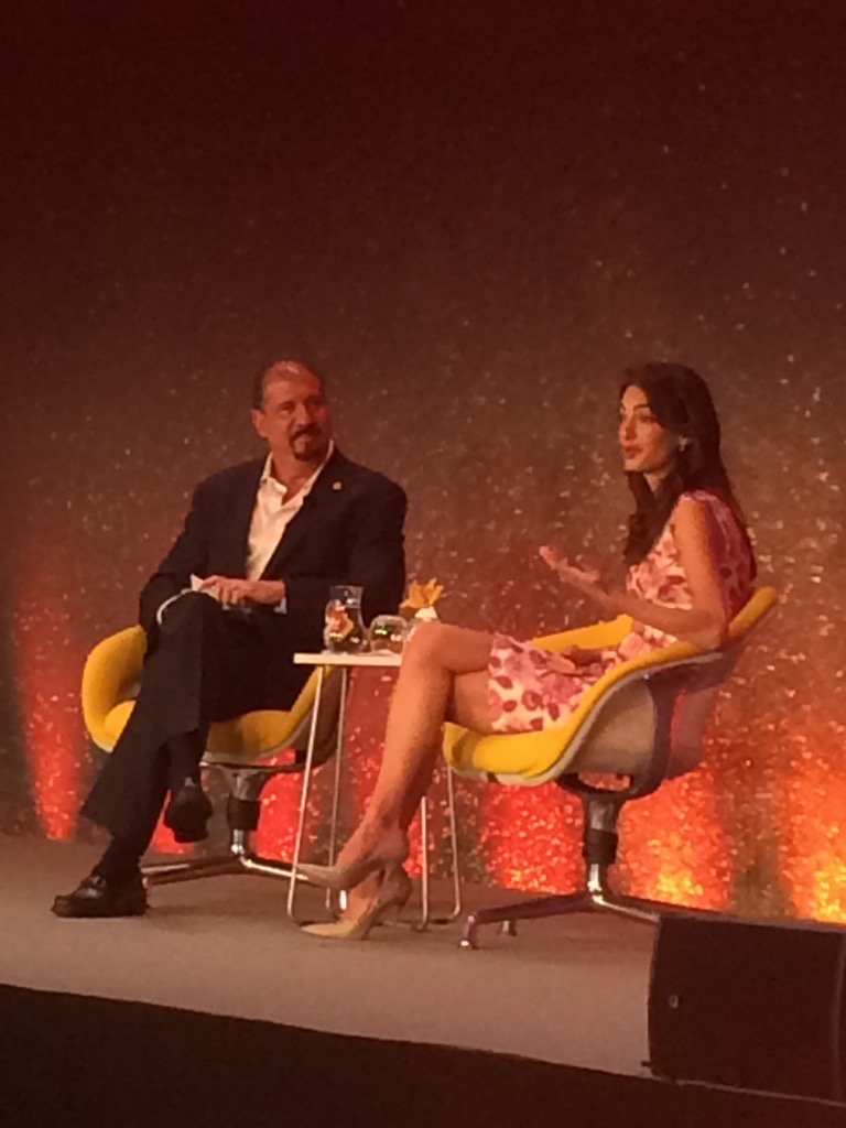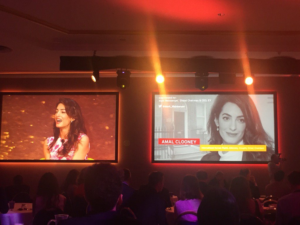 Amal Clooney added, “the way the private sector can help is that, for instance, we could be designing a software programme that allows these observers to input information in a more uniform manner, so that we can ultimately compare one trial to another and eventually get something like a justice index, where you can compare one court to another. And [that would mean] governments could no longer hide behind the courts to the extent that they do at the moment.”