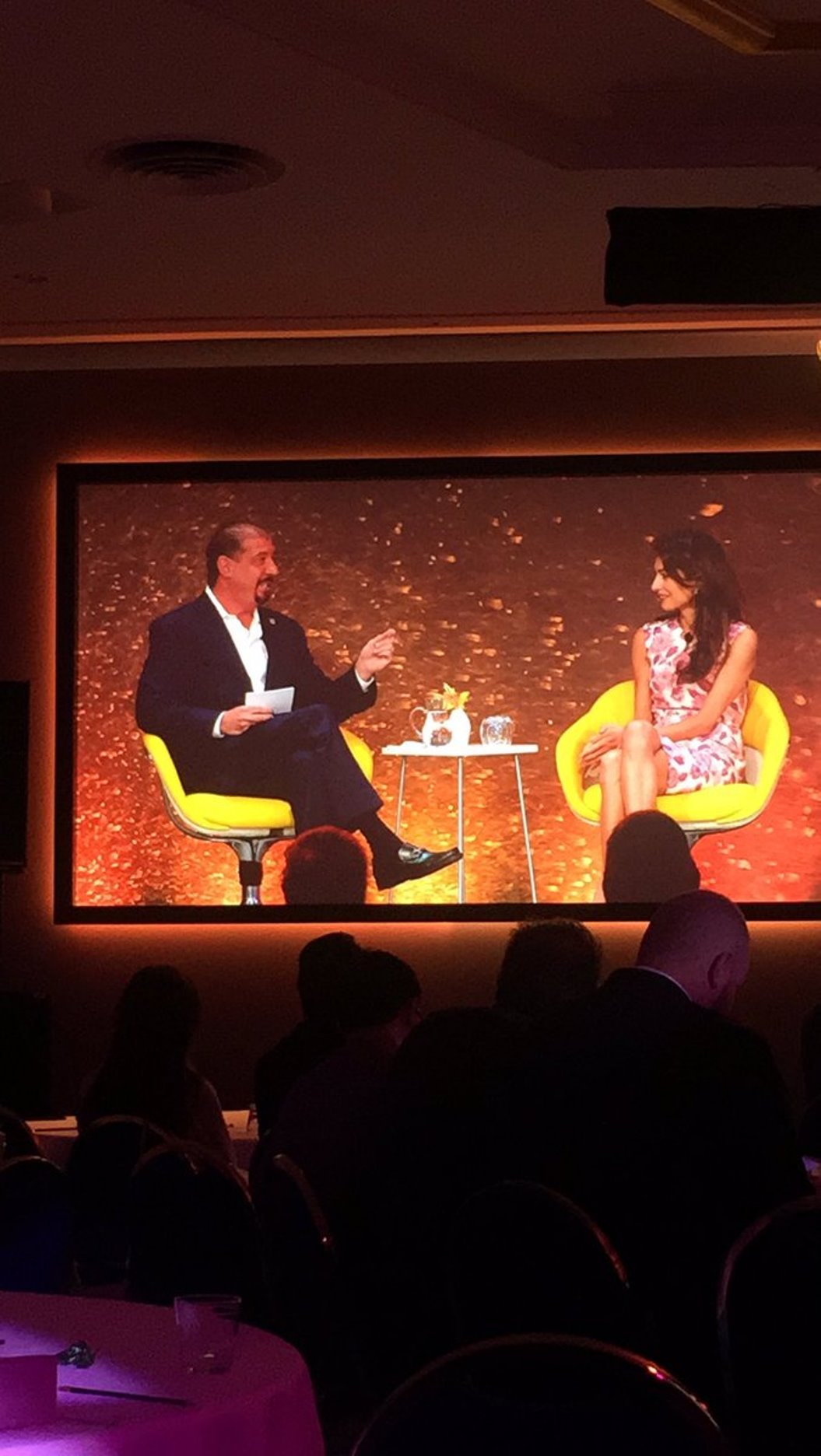 She was interviewed by EY chair and chief executive Mark Weinberger. She looked elegant in a floral sleeveless dress with her Paul Andrew Zenadia pumps and pearl drop earrings.