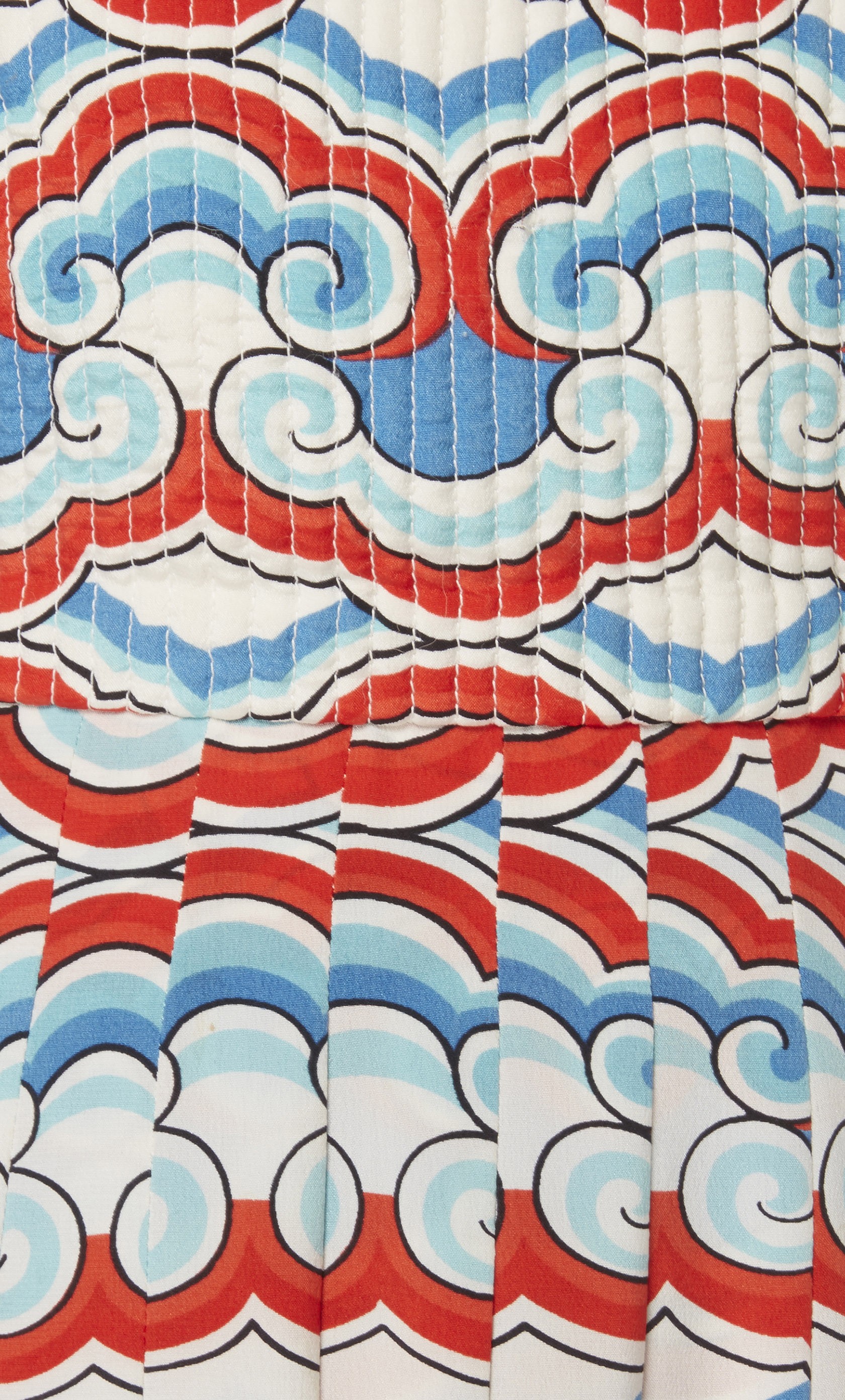 I agree with Jackson. It does appear to be culottes, or maybe even a pant suit or jumpsuit. Nice design & print. I also like the combination of colors. Nice necklace & bracelet. 🙂