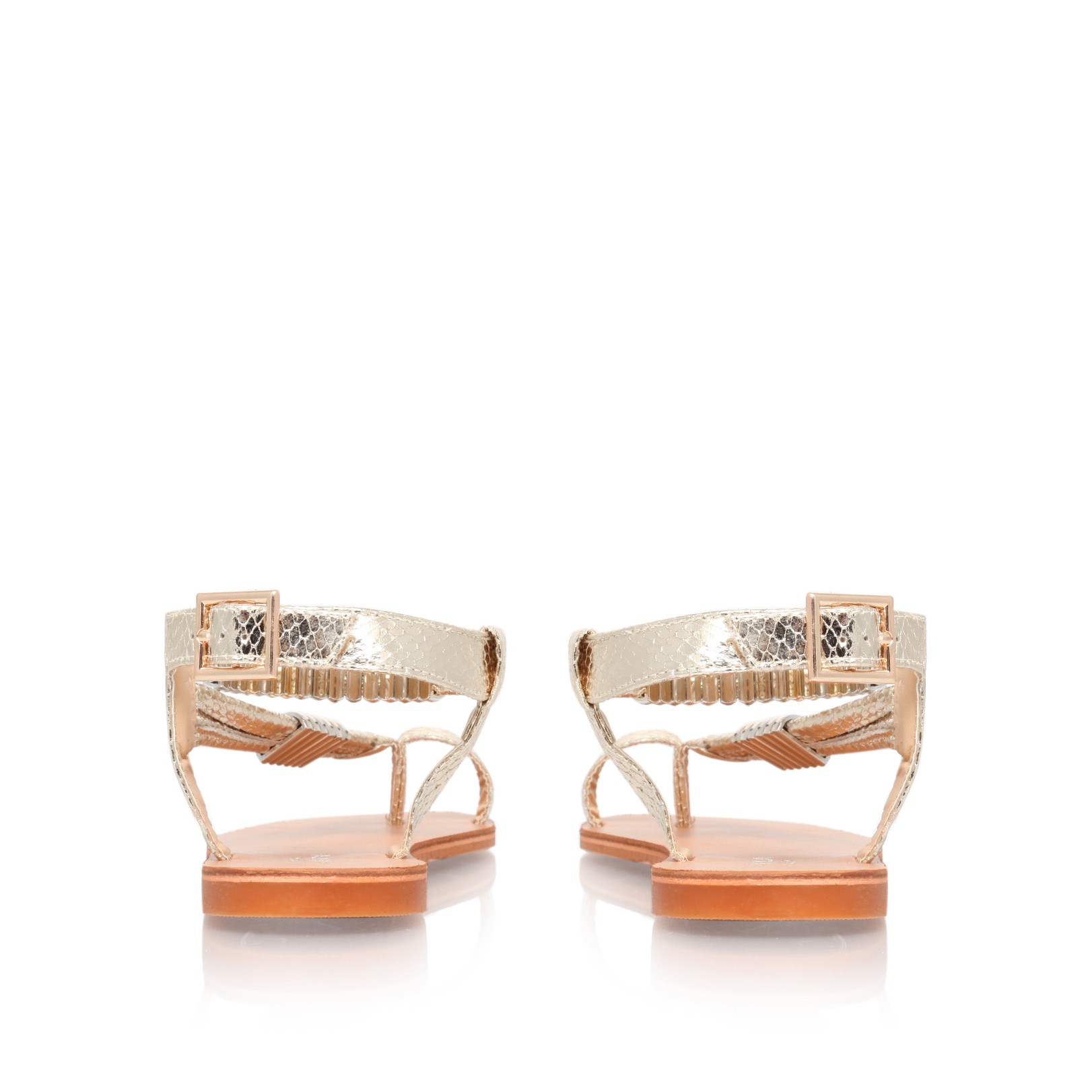 She looks lovely, channeling Cleopatra with those sandals and jewelry. This vintage dress flatters her tall frame without seeming too trendy.