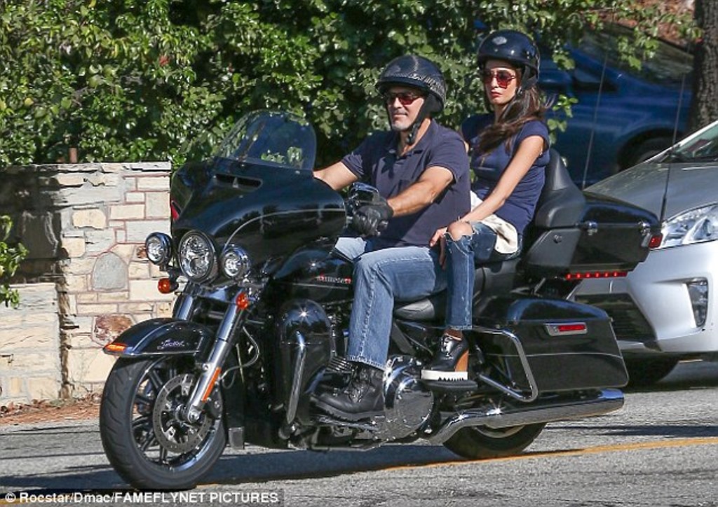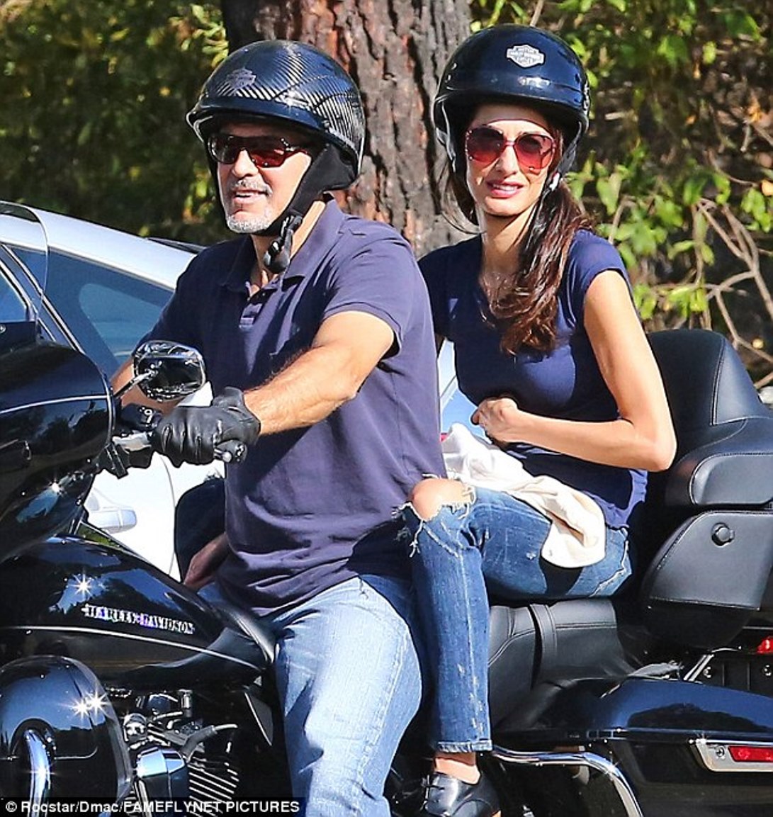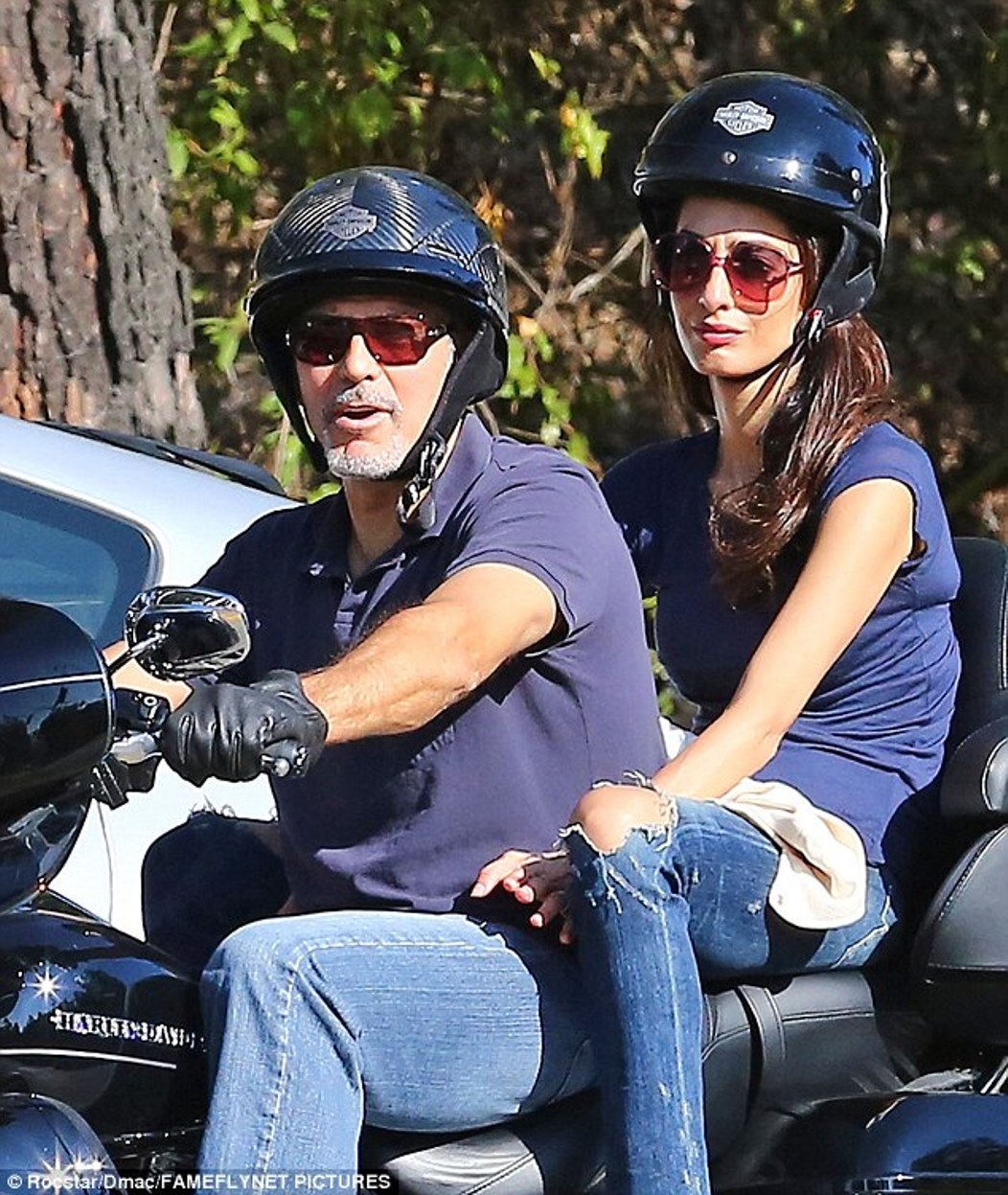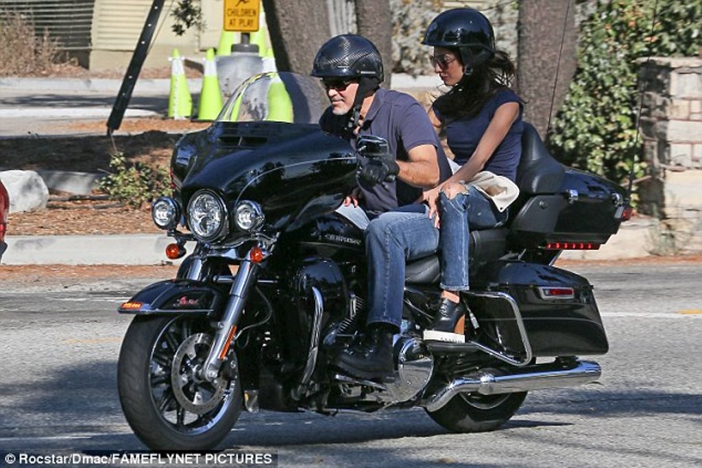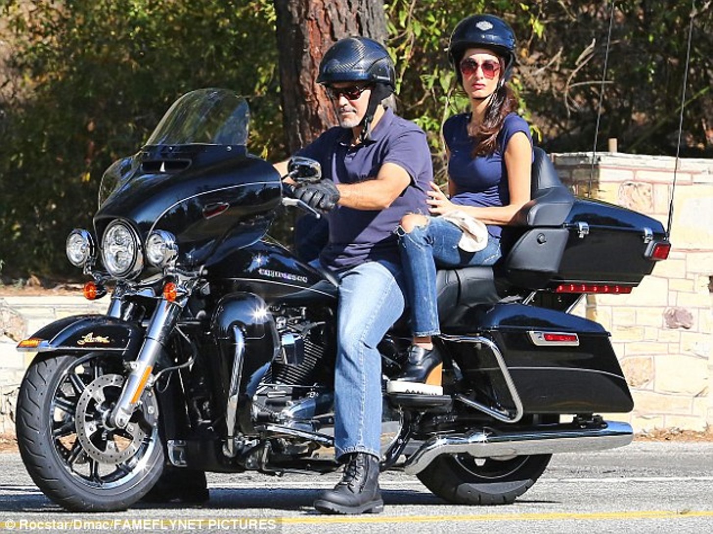 Amal and George Clooney went for a biker ride in Los Angeles on Friday.