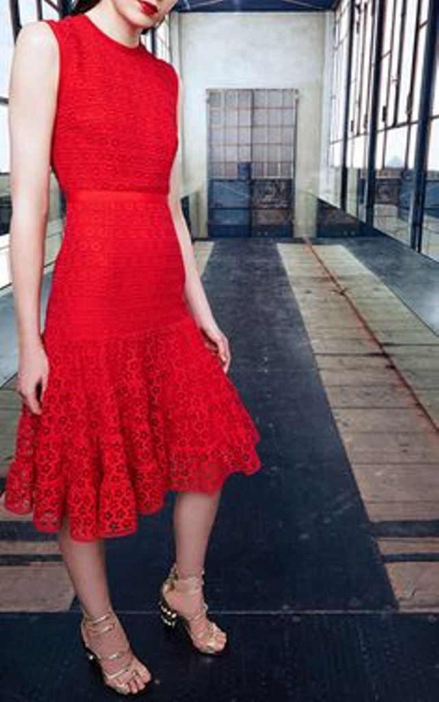 Simply beautiful! I like this dress a whole lot more than her previous lace skirt. Love the color on her. The whole look is fresh and summery.