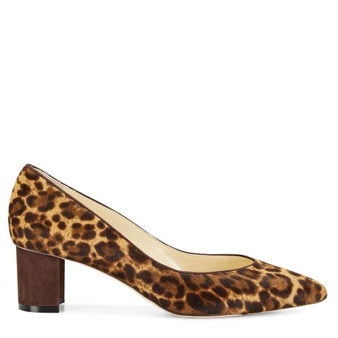 CHOCOLATE LEOPARD HAIR CALF BLOCK HEEL PUMP