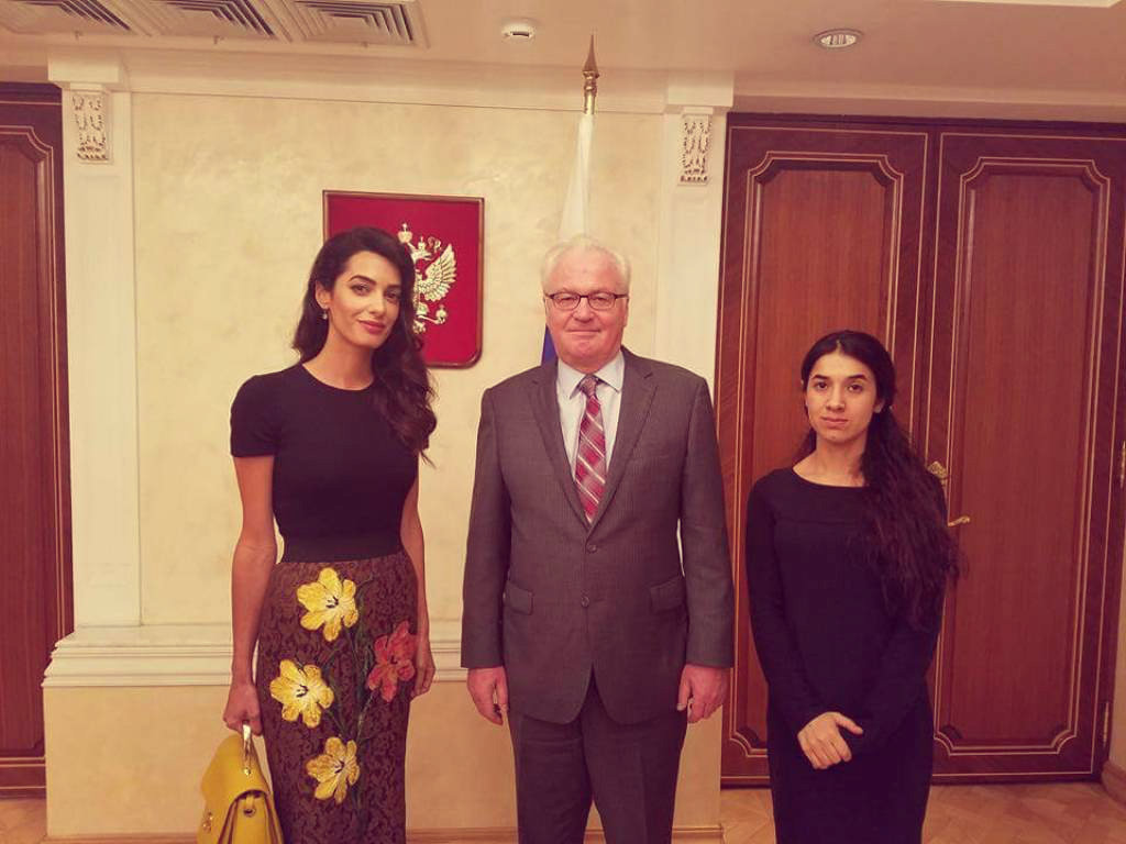 Amal Clooney and Nadia Murad meet yesterday Vitaly Churkin, Russia’s Permanent Representative to the United Nations in New York.