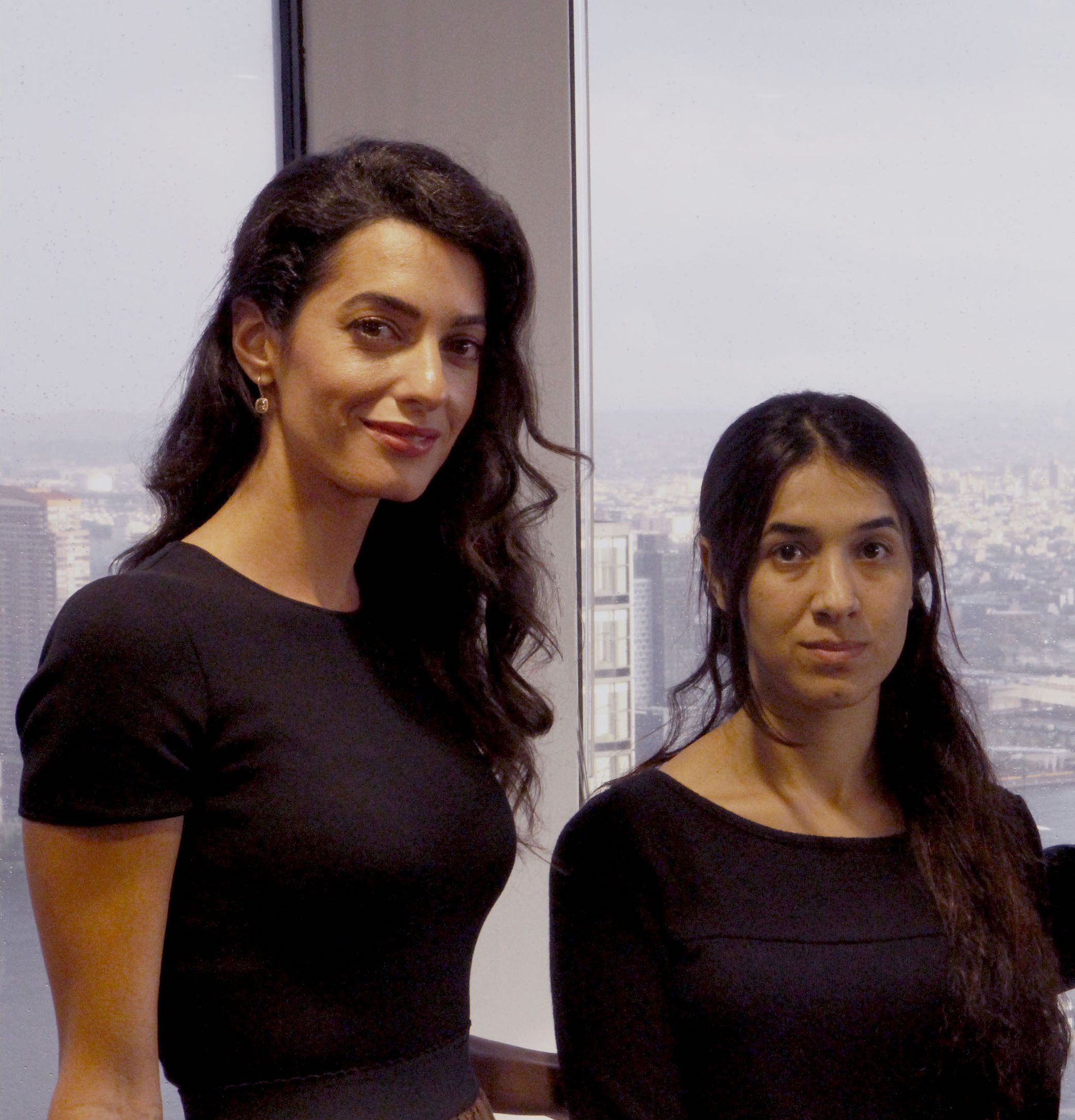 Nadia Murad is a very pretty girl, too. Pretty hair and subdued dress. May she find peace
