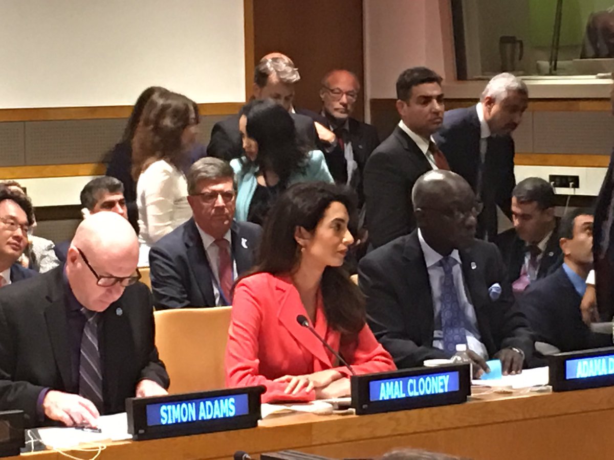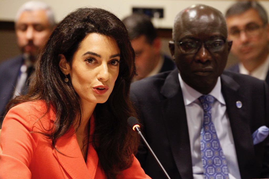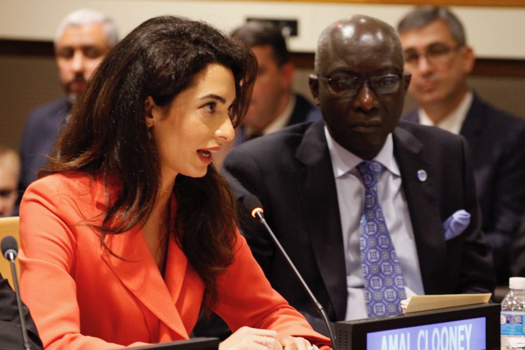Amal Clooney and Nadia Murad take part in the UN General Assembly to denounce the Yazidi genocide on September 19th , 2016 in New York.