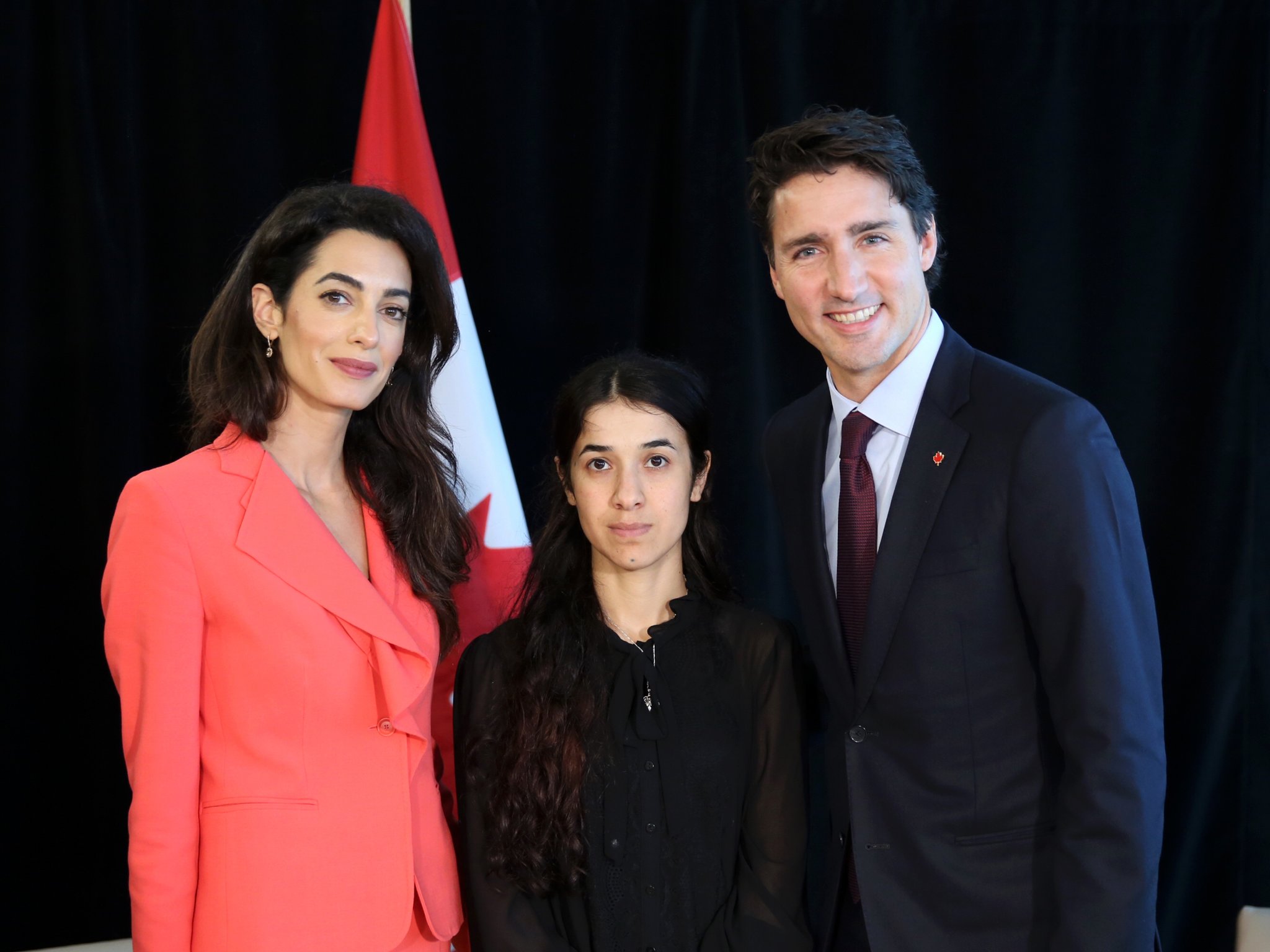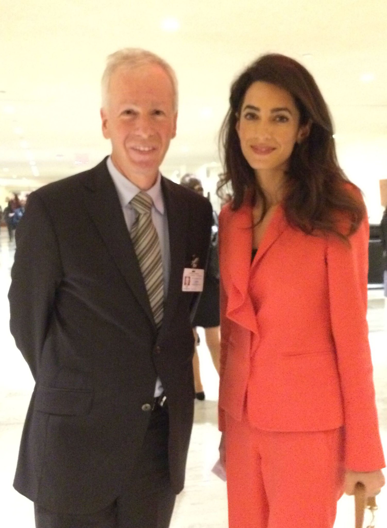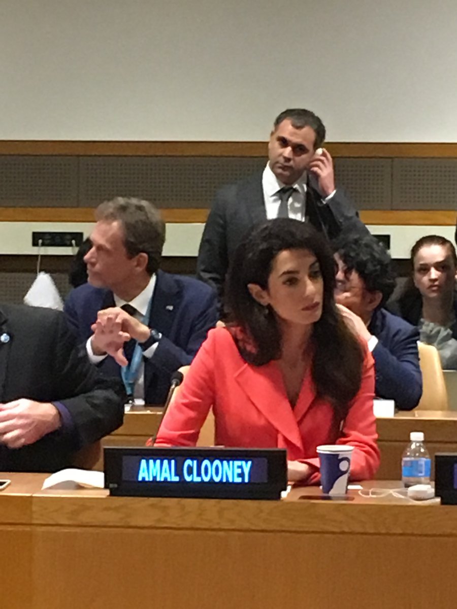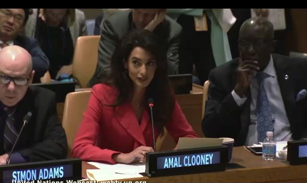 Agreed, your eye is drawn to that pop of colour and away from her client, Nadia, who should be the centre of attention. I have had a hard time looking at the pictures of the last few days. The look of pain and sadness of the young woman always in plain black contrasted with her rich, flamboyant celebrity lawyer is difficult for me. But then again, it speak volumes about the gulf between the desperate lives of women like Nadia and the lives of privilege of women like Amal. I have spent time working among those women and always think it was the luck of draw that I am not one of them. It is humbling to realize the strength and courage they must have just to survive their lives. I’m not sure the way Amal has dressed on these occasions honours that.