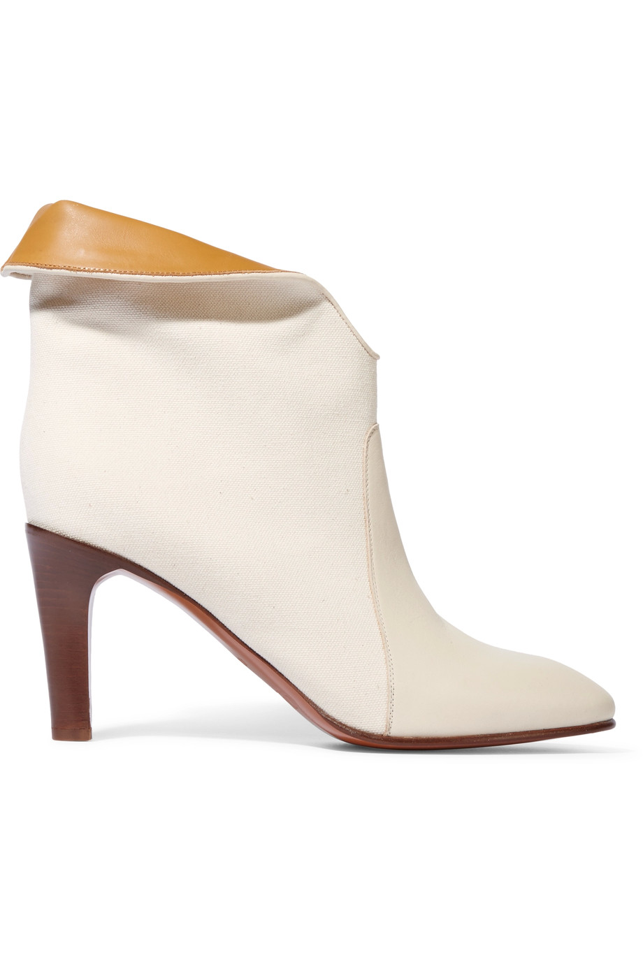 Leather-paneled canvas ankle boots