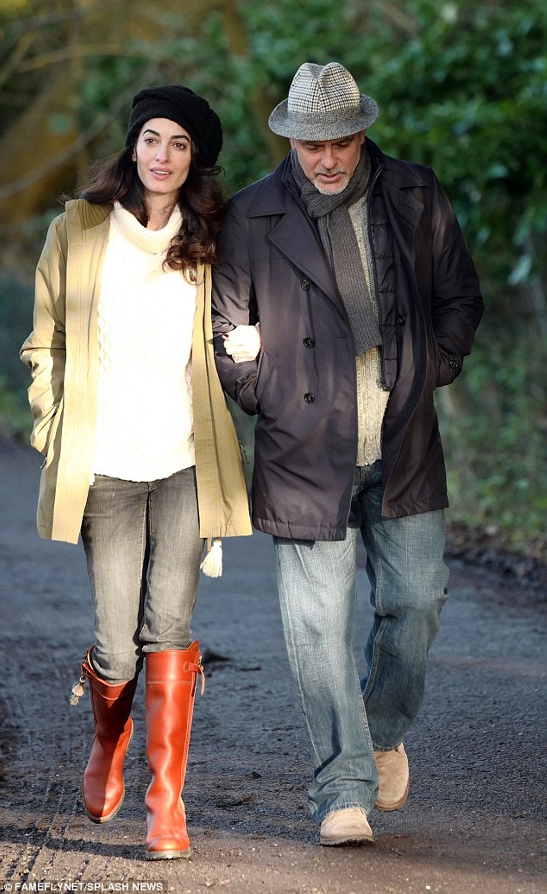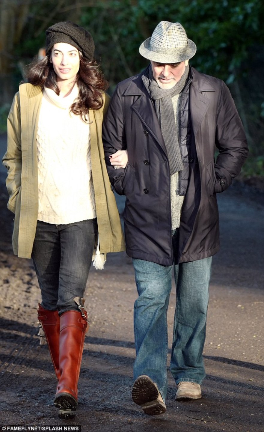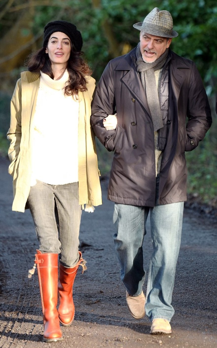 Amal and George Clooney enjoyed a winter walk in Berkshire countryside.