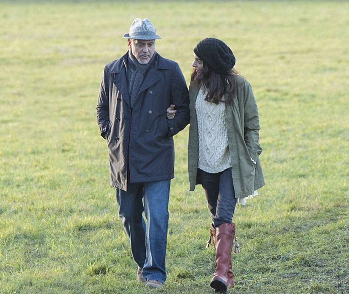 “Amal and George Clooney spotted walking in the Berkshire.”