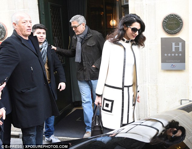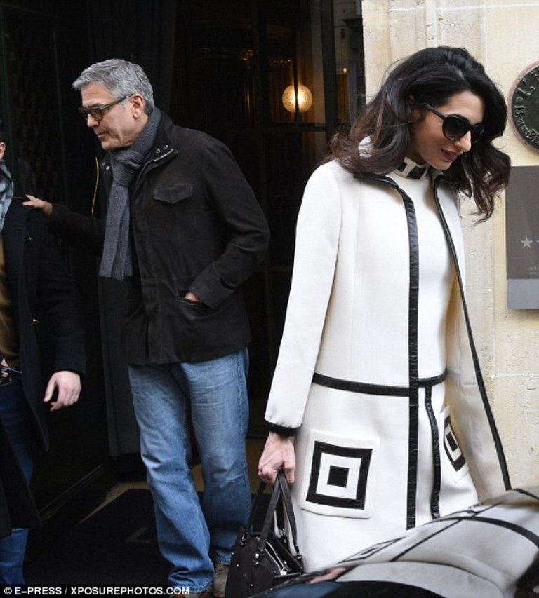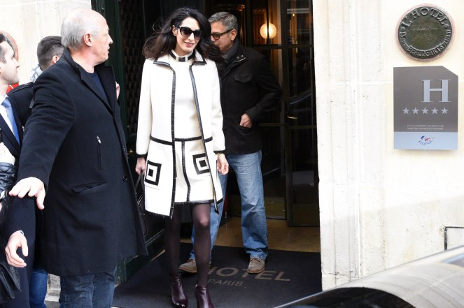 Amal and George Clooney leaves their hotel L’Hôtel in Paris for a walk in the romantic city.