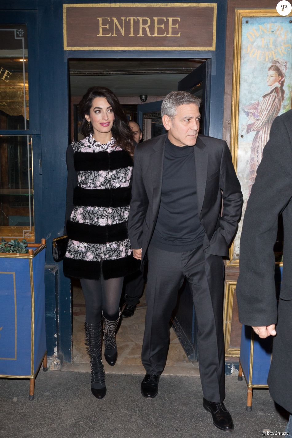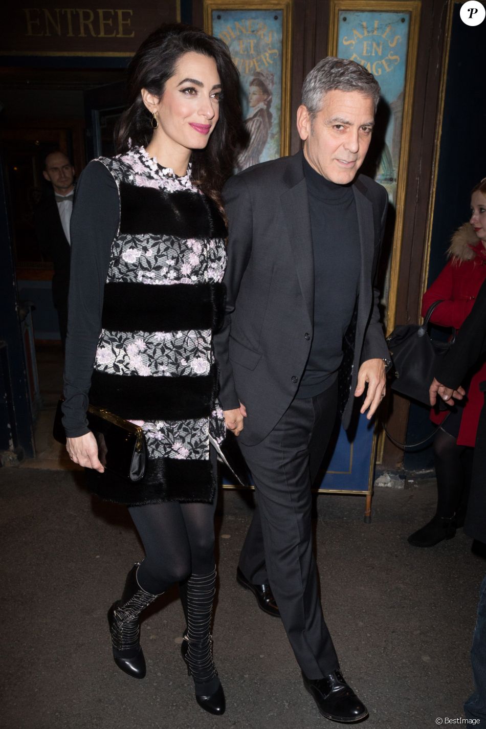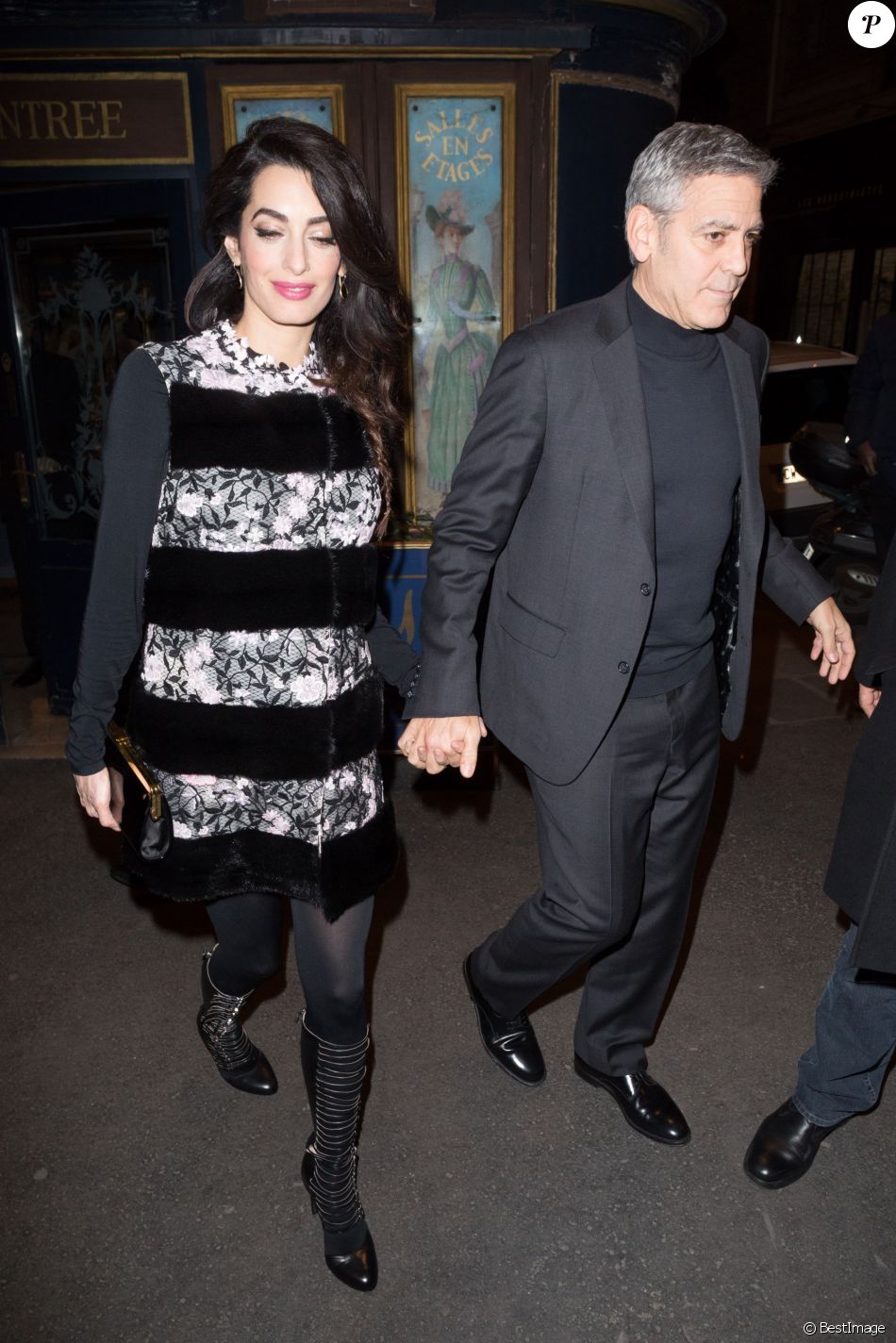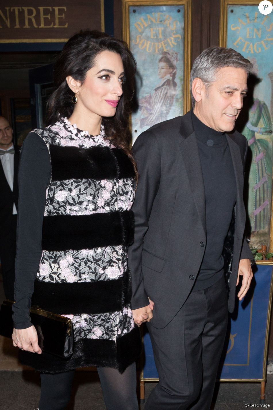Amal and George Clooney were spotted going for dinner at the restaurant Lapérouse in Paris. So many paparazzi and flashes.