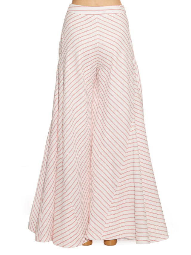 Amal should have had the length of the pants shortened. The pants are overwhelming her. The outfit looks OK from the front but terrible from the back. Her bra is showing and the pants look odd around her butt. The shoes don’t go with the outfit at all. Amal usually wears lovely clothes but her shoes are mostly wrong for the outfits.