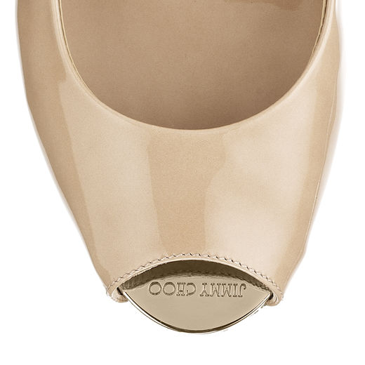 Nude Patent Leather Sling Back Peep Toe Wedges